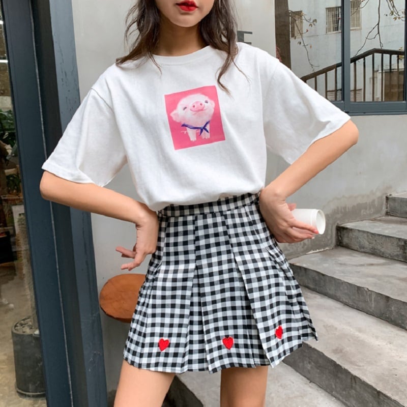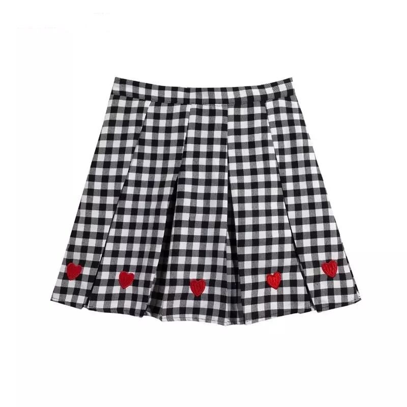 送料無料୨♥୧ スタイルレディースミニプリーツスカート ウェスト格子柄刺繍ハート 大人ガーリー スウィート キュート カジュアル AOS11904153210