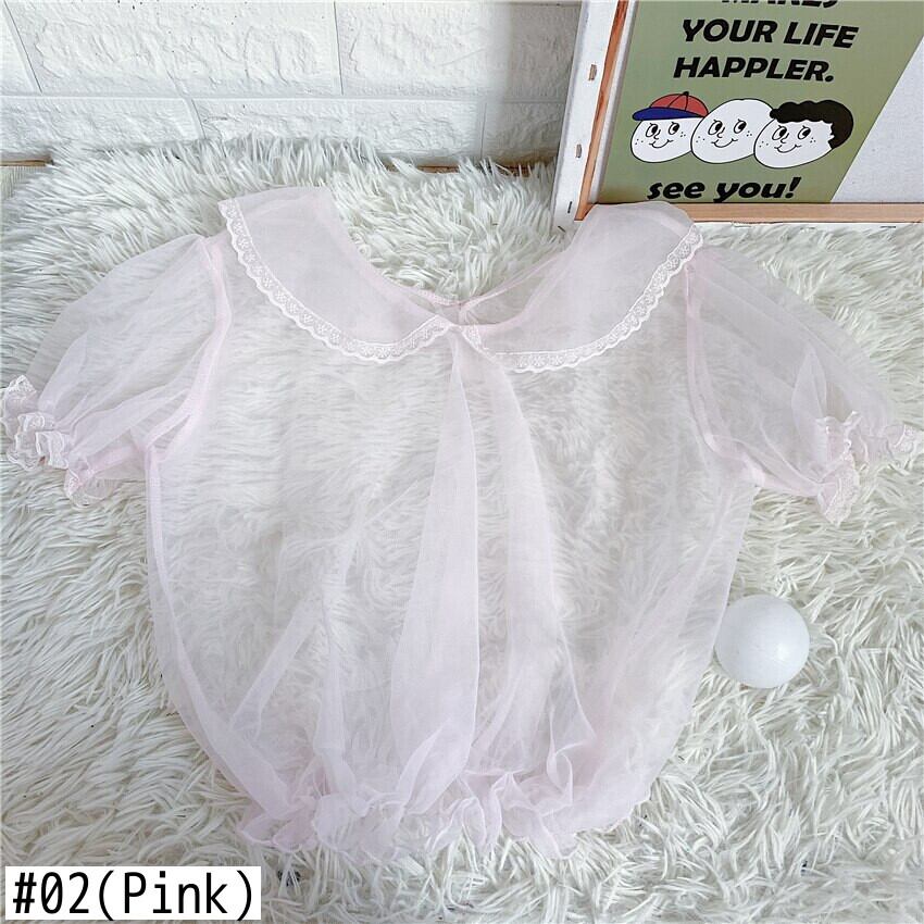 送料無料୨♥୧ スタイルサマーレディースクロップトップ トップス カラーシャツ メッシュブラウス 大人ガーリー スウィート キュート カジュアル 夏物 AOS94666486195