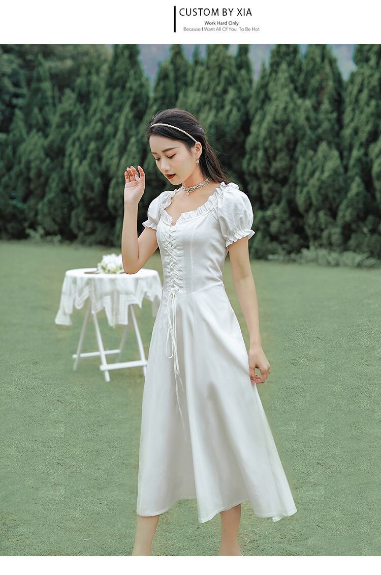 送料無料୨♥୧ サマーレディースロングドレス カラーバンドホワイトスリーブ 大人ガーリー スウィート キュート カジュアル 夏物 スクウェア AOS83854782382