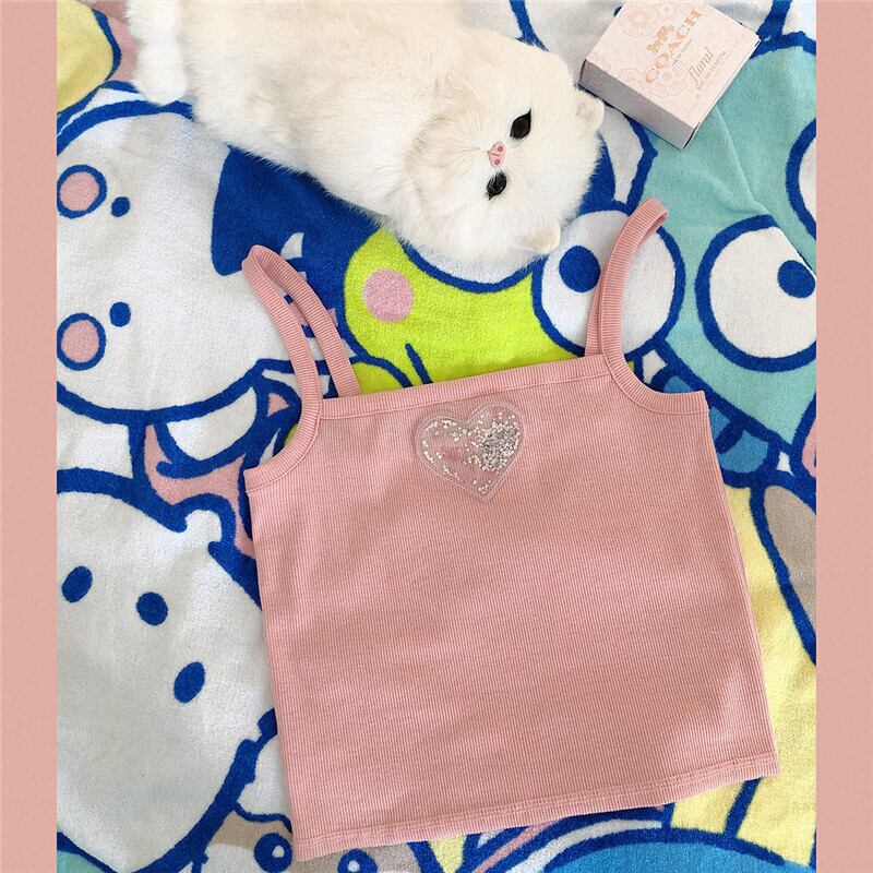 送料無料୨♥୧ サマーレディースクロップトップ トップス スタイルハートキャミ ピンク コットン 大人ガーリー スウィート キュート カジュアル かわいい 夏物 AOS95871523524