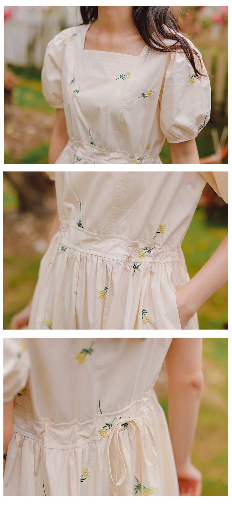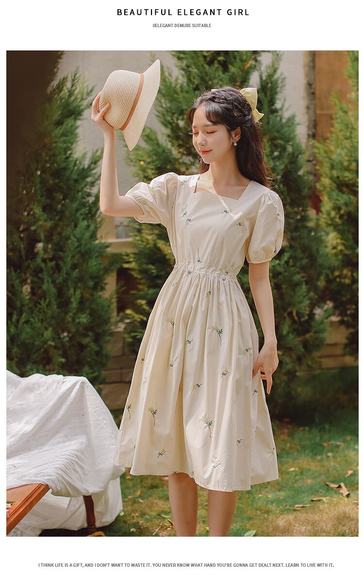 送料無料୨♥୧ サマーレディースAラインドレス カラーフローラル刺繍ミディスリーブ 大人ガーリー スウィート キュート カジュアル 夏物 花柄 スクウェア AOS85031833959