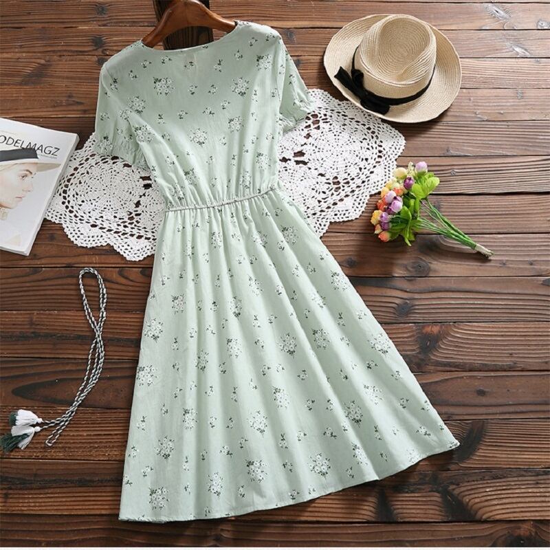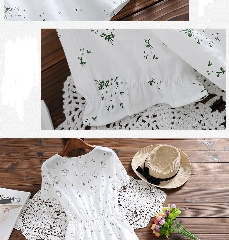 送料無料୨♥୧ サマーレディースホワイトグリーンミニドレス フローラルプリントスリムスタンダード レトロ 大人ガーリー スウィート キュート カジュアル 夏物 花柄 AOS63684528088