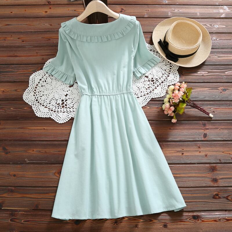 送料無料୨♥୧ スタイルサマーレディースドレス カラーグリーンドレス ワンピース コットン 大人ガーリー スウィート キュート カジュアル 夏物 AOS75983792291