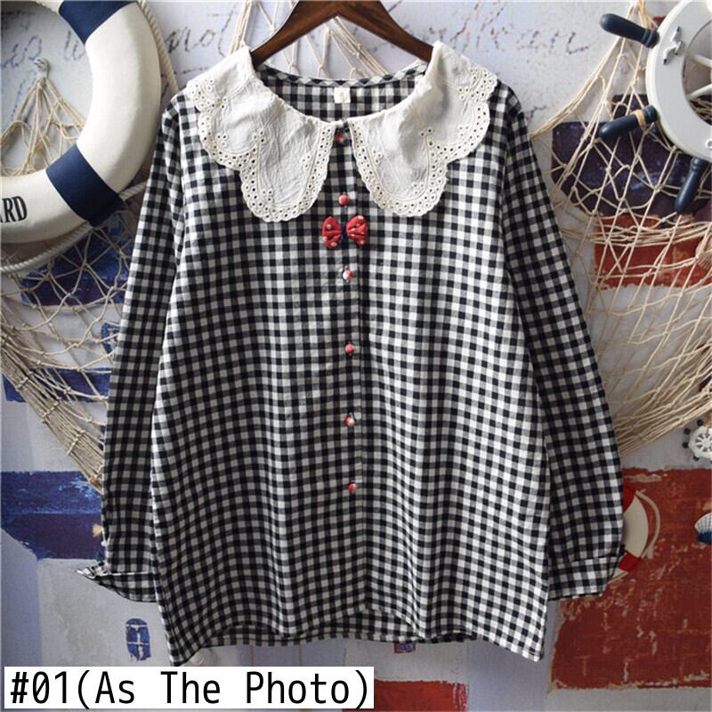 送料無料୨♥୧ スプリングオータムレディースシャツ カラーブラックレッドリボン格子柄ブラウス ヴィンテージ コットン 大人ガーリー スウィート キュート カジュアル 春物 秋物 ビンテージ AOS6500788915
