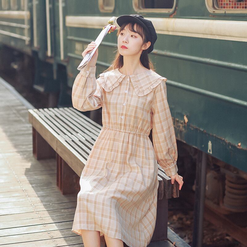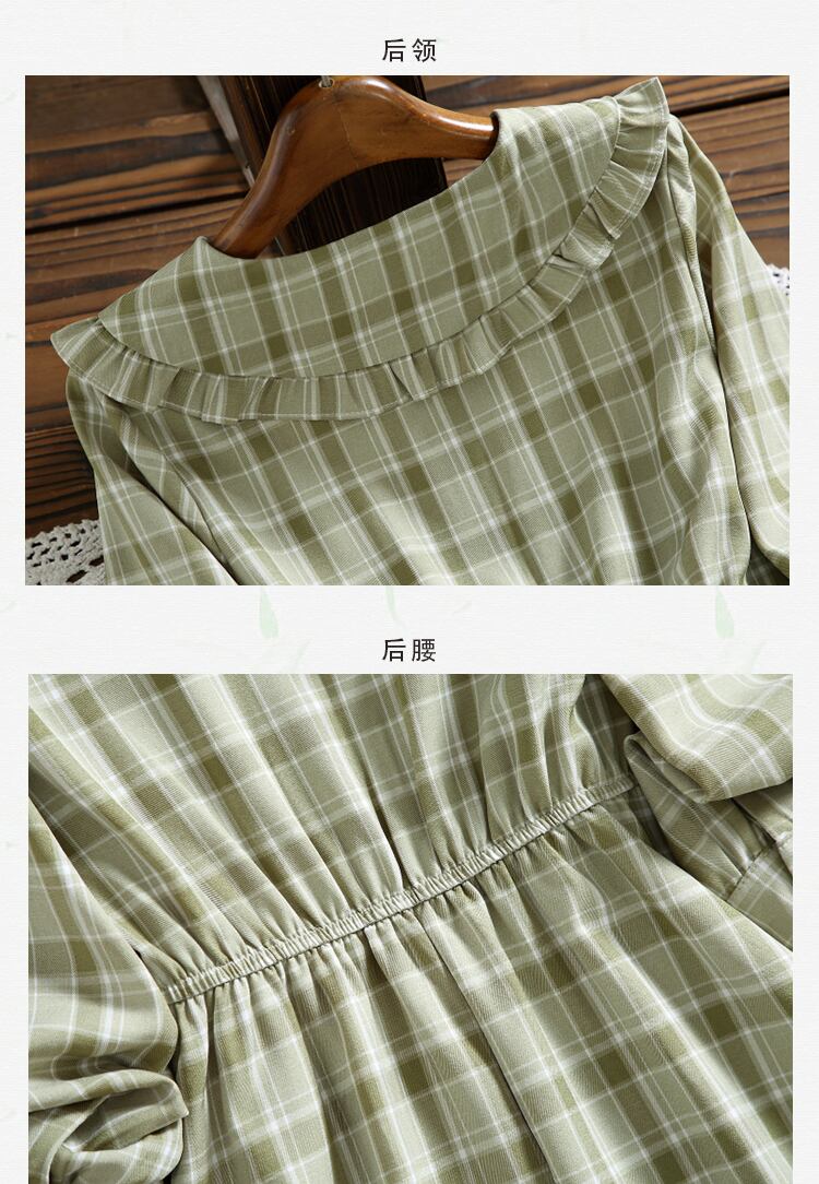 送料無料୨♥୧ スタイルオータムスプリングレディースドレス カラーグリーン格子柄フェミニーズ 大人ガーリー スウィート キュート カジュアル 春物 秋物 AOS90258071684