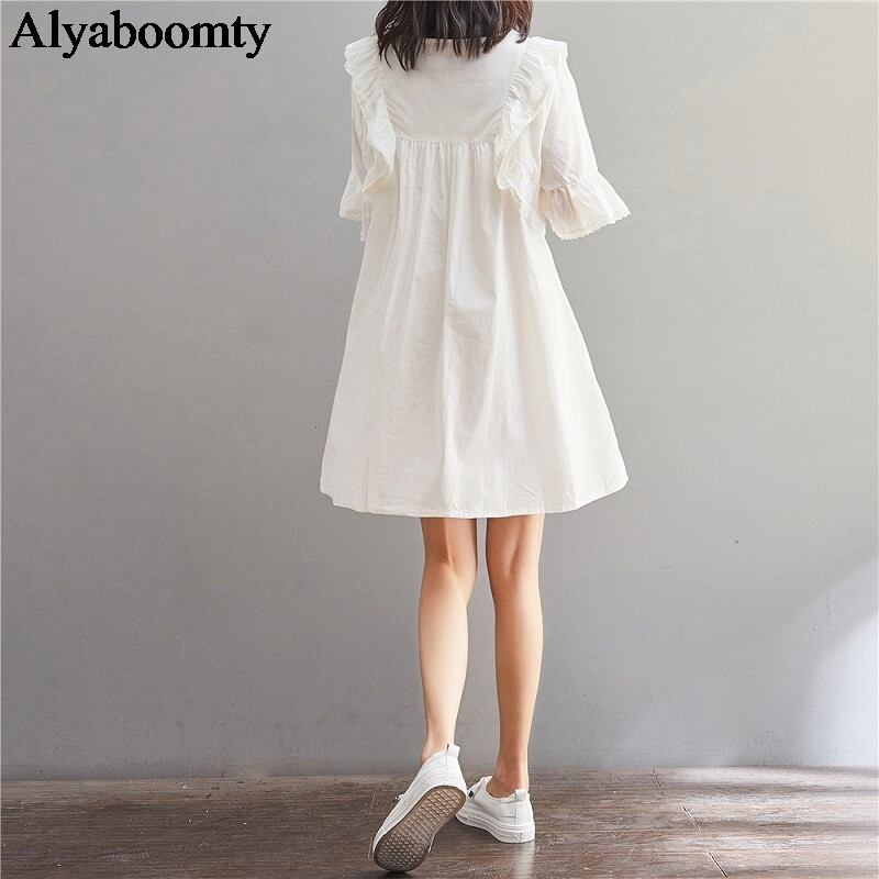 送料無料୨♥୧ スタイルサマーレディースドレス ルーズホワイトスリーブ フレアスリーブ コットン 大人ガーリー スウィート キュート カジュアル 夏物 AOS5520649922