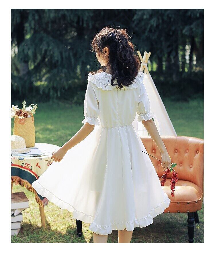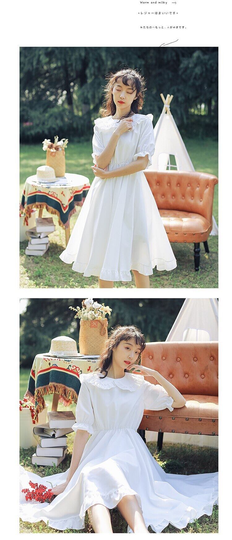 送料無料୨♥୧ スタイルサマーレディースホワイトドレス カラーフリル半袖スリーブ ショート ハーフスリーブ ラッフル エラスティック 伸縮 大人ガーリー スウィート キュート カジュアル 夏物 AOS13434147077