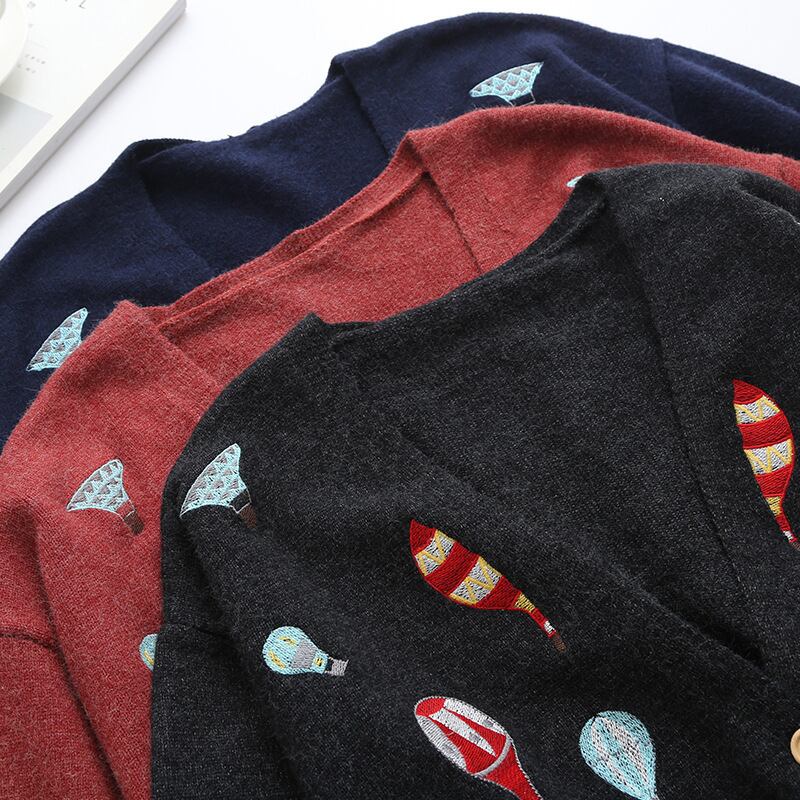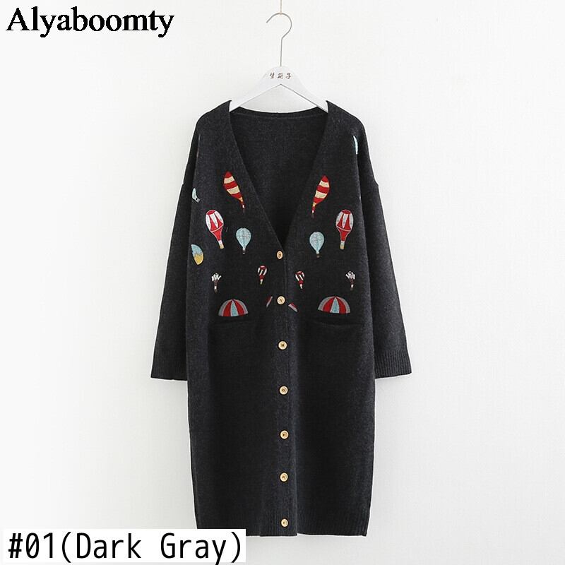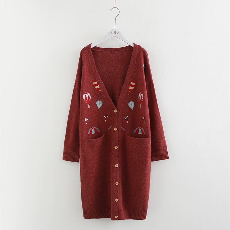 送料無料୨♥୧ オータムウィンターレディースロングカーディガンVネック刺繍ルーズセーター 大人ガーリー スウィート キュート カジュアル 秋物 冬物 AOS98571712751