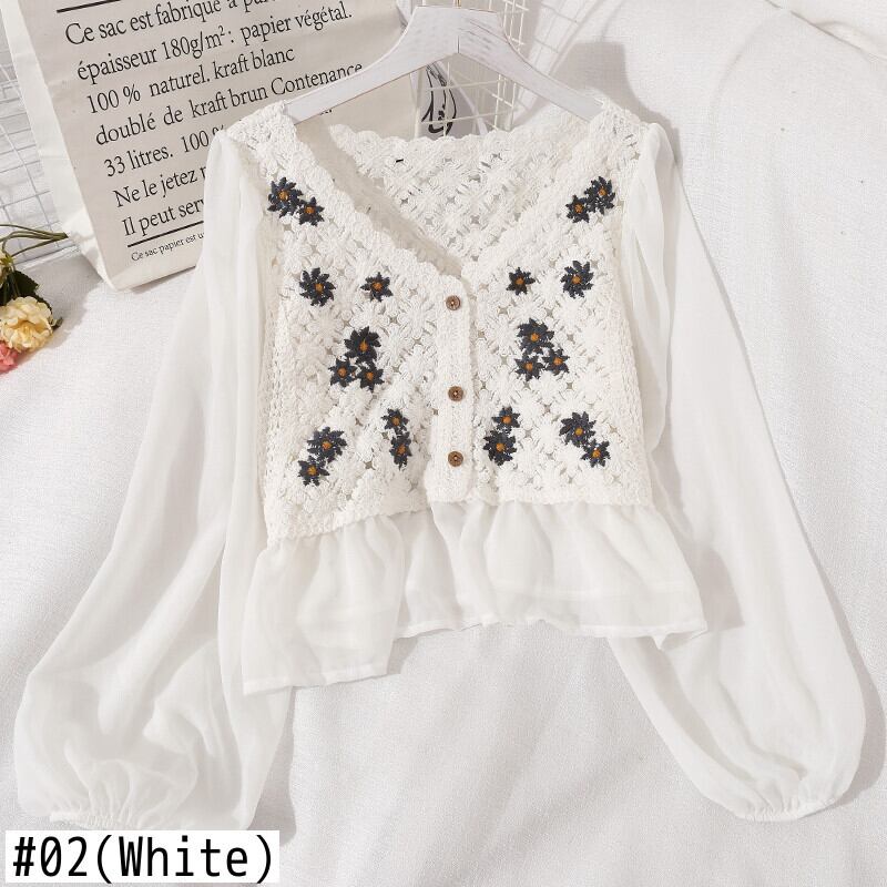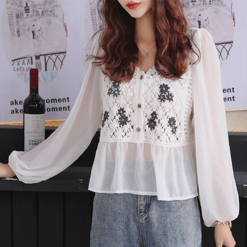 送料無料୨♥୧ スプリングサマーレディースブラウス Vネックホワイトシフォンシャツ 大人ガーリー スウィート キュート カジュアル 春物 夏物 AOS57510005606