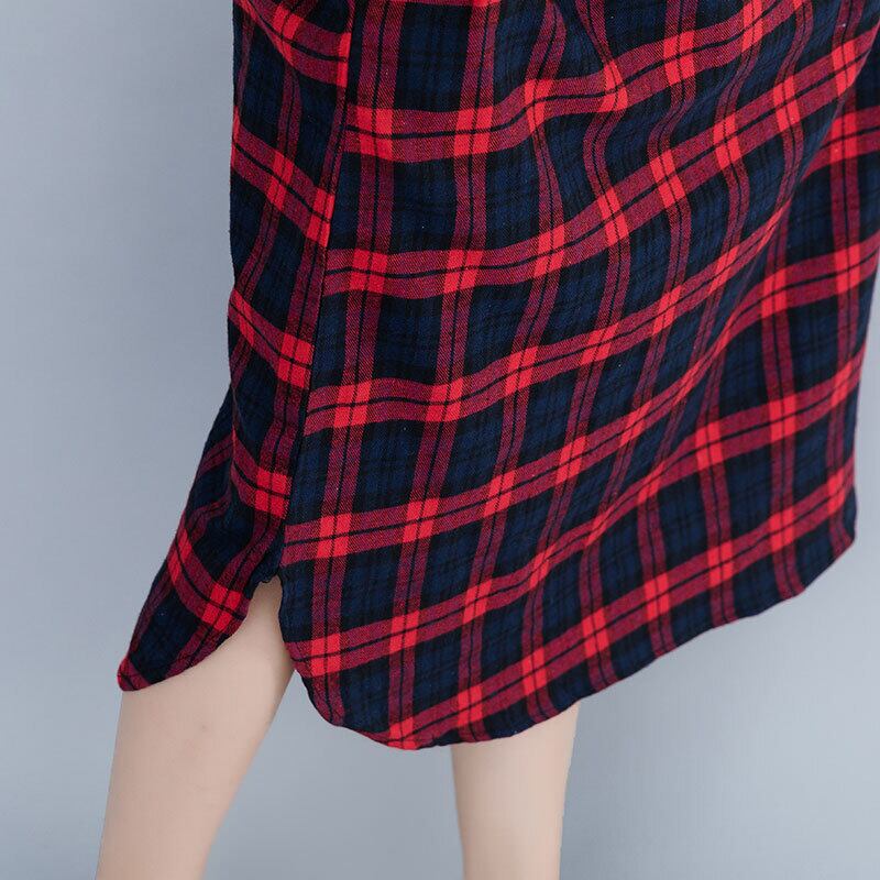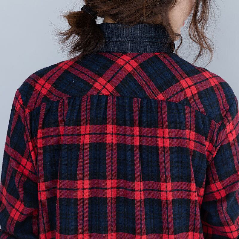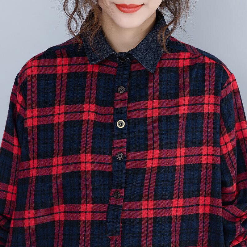 送料無料୨♥୧ スプリングオータムレディースロングシャツ ドレス カラーレッドグリーン格子柄ヴィンテージ 春物 秋物 ビンテージ AOS48479935821