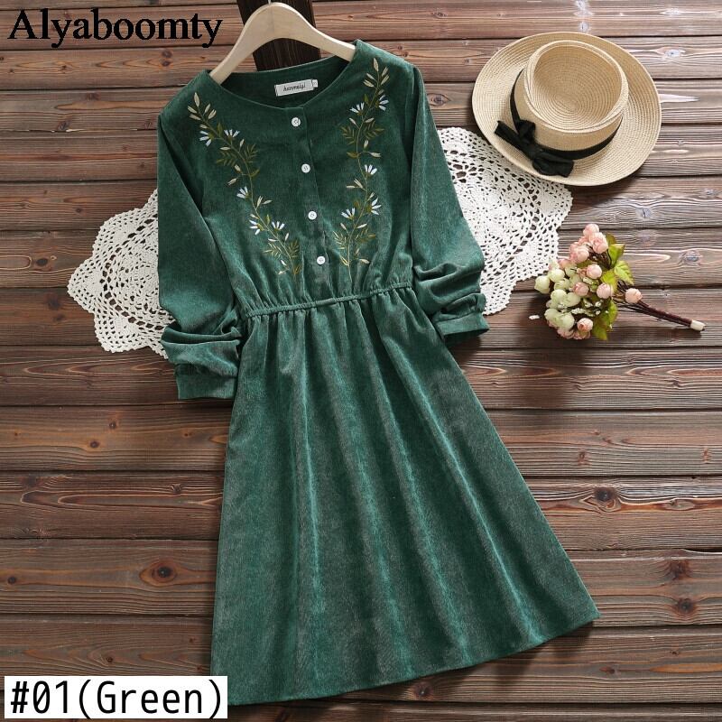 送料無料୨♥୧ スプリングオータムレディースドレス フローラル刺繍長袖スリーブドレス ワンピース ロング エラスティック 伸縮 大人ガーリー スウィート キュート カジュアル 春物 秋物 花柄 AOS54898225290