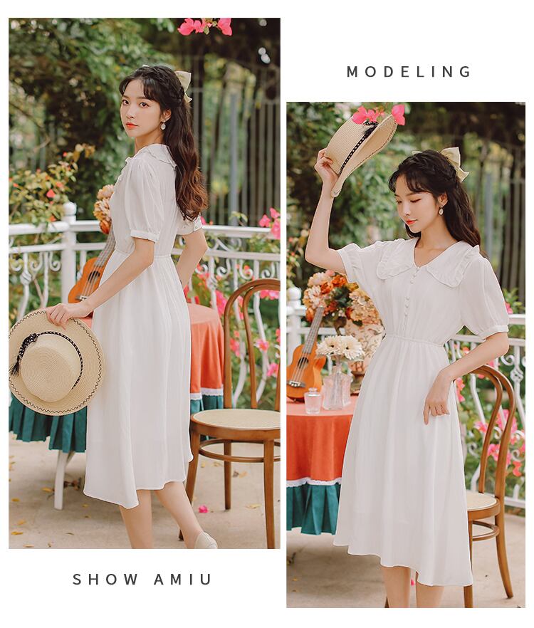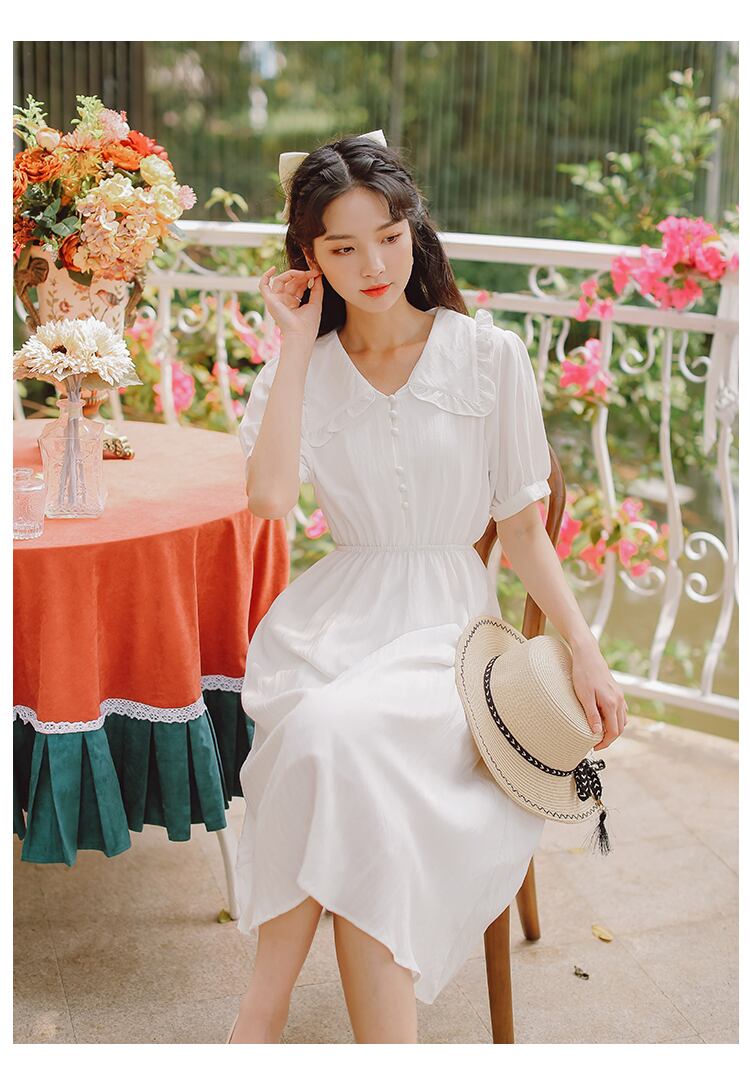 送料無料୨♥୧ サマーレディースミディドレス カラーホワイトグリーン エラスティック 伸縮 大人ガーリー スウィート キュート カジュアル 夏物 AOS387198749