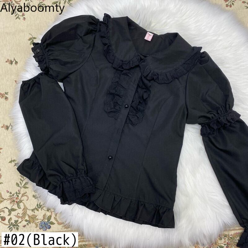 送料無料୨♥୧ サマーレディースブラウス ブラックホワイトカラーフリルトップス ピンク ラッフル 大人ガーリー スウィート キュート カジュアル 夏物 AOS33051847404