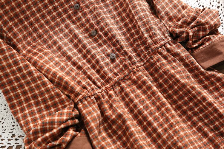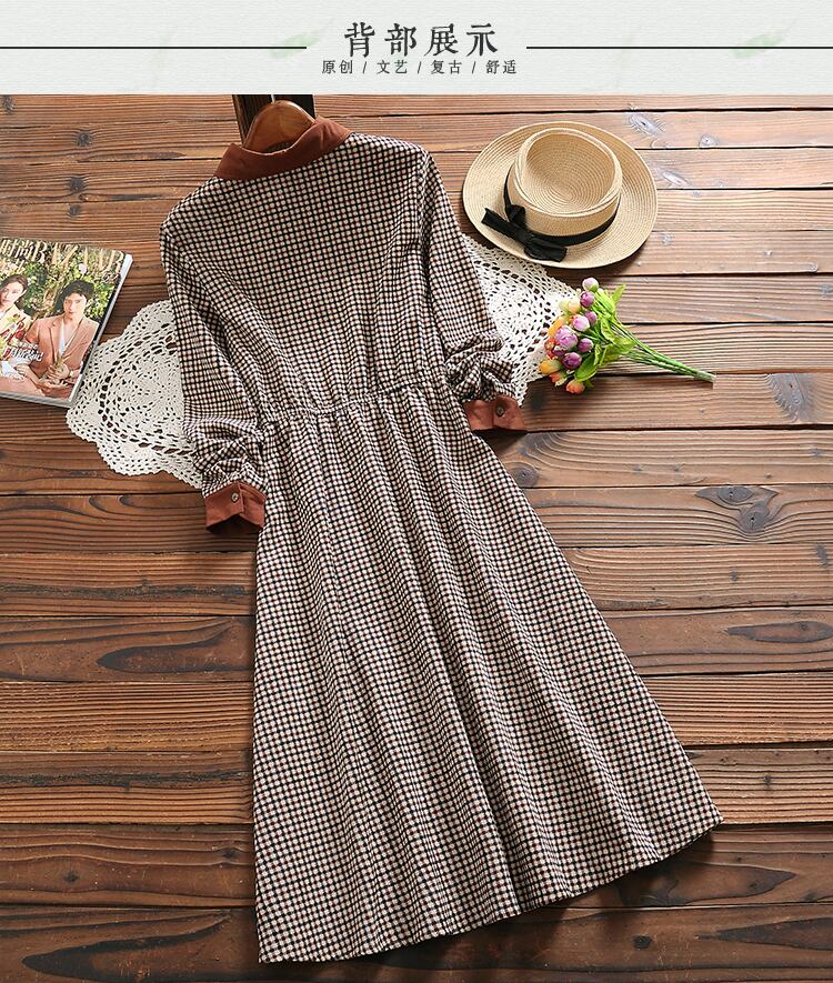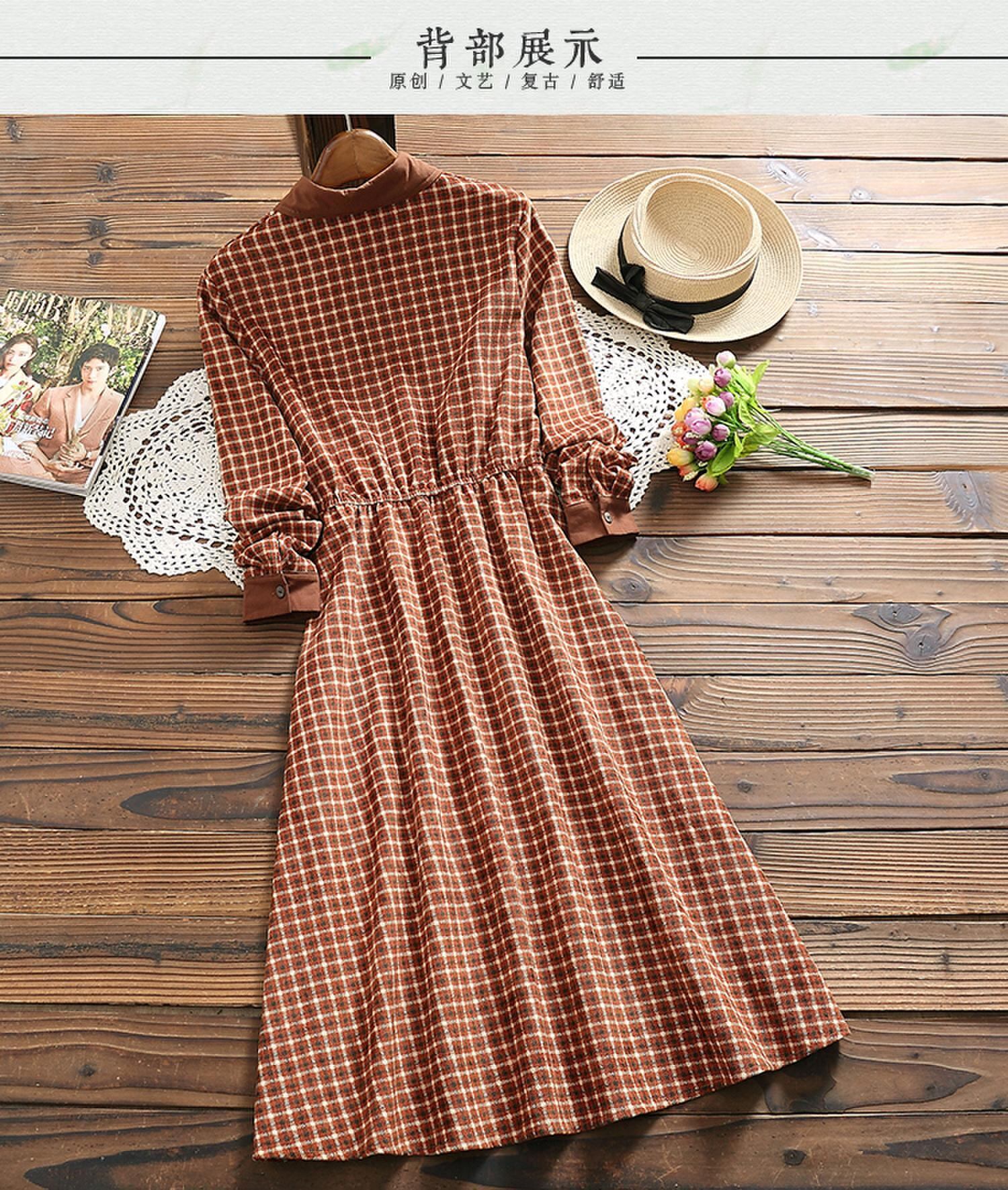 送料無料୨♥୧ スプリングオータムレディースコーデュロイドレス カラー格子柄長袖スリーブ ロング エラスティック 伸縮 春物 秋物 AOS47686511965