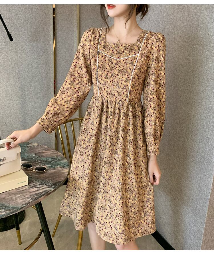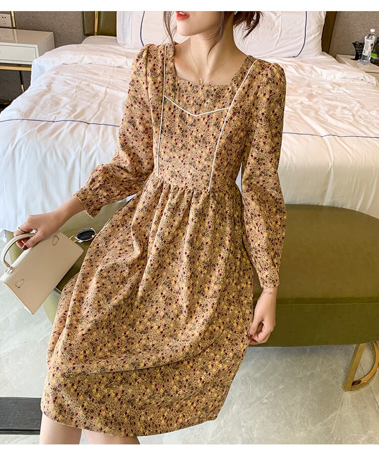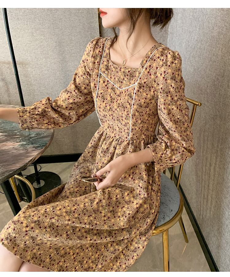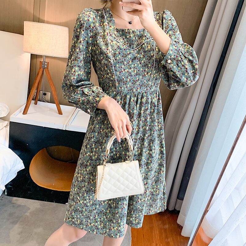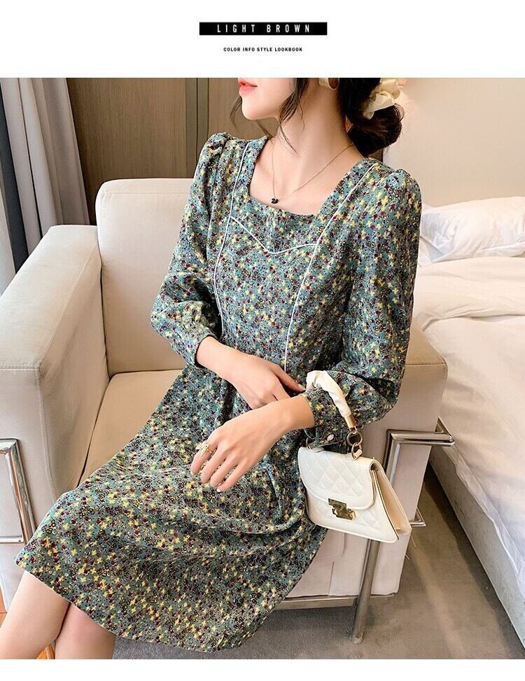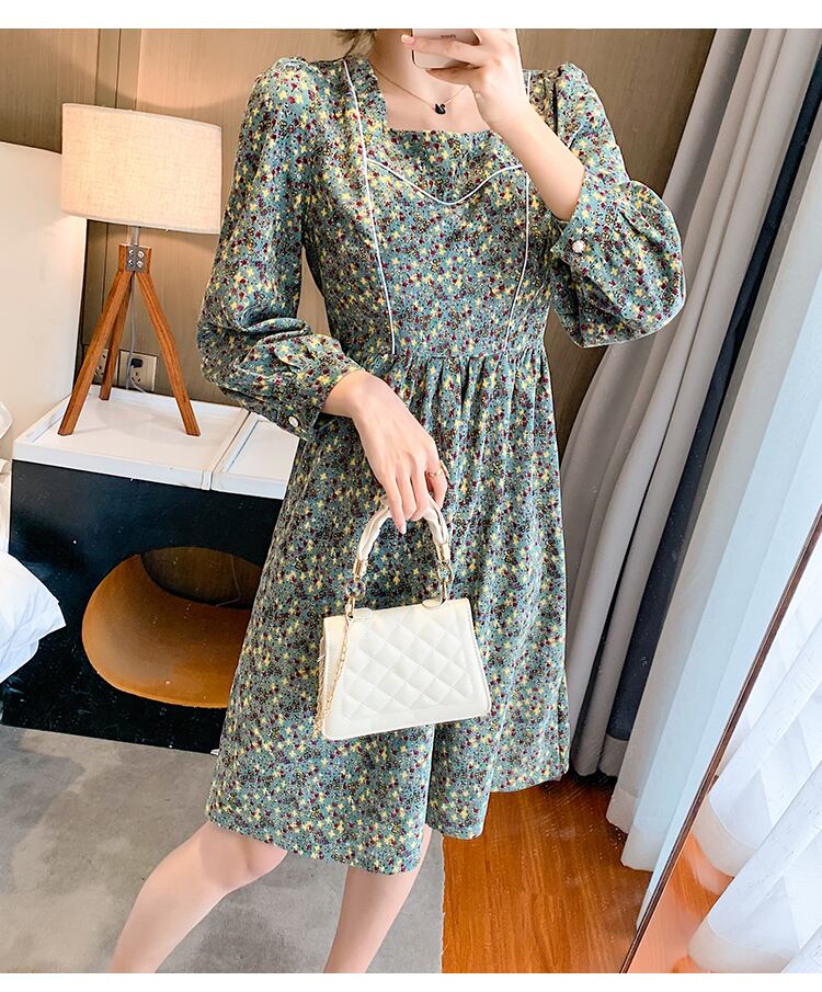 送料無料୨♥୧ スプリングオータムレディースコーデュロイドレス ルーズグリーンカーキフローラル 春物 秋物 花柄 AOS55517540915