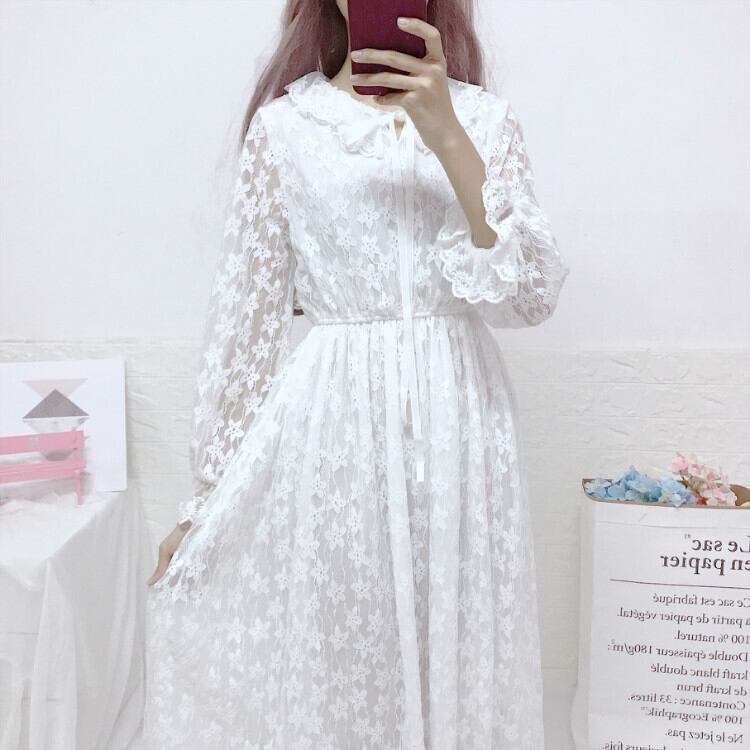 送料無料୨♥୧ レディースドレス カラーホワイトフローラルレース 大人ガーリー スウィート キュート カジュアル 花柄 AOS5052666270