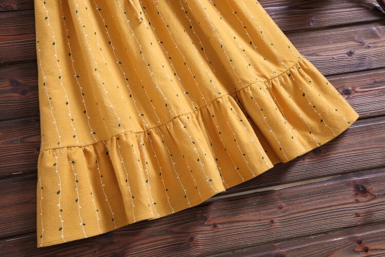 送料無料୨♥୧ スプリングオータムレディースドレス カラーイエローリボンフローラルプリントフリルドレス ワンピース ピンク コットン ラッフル 大人ガーリー スウィート キュート カジュアル 春物 秋物 花柄 AOS80614659676