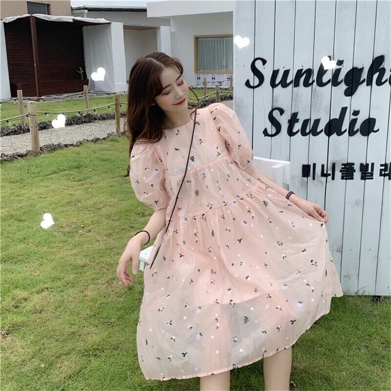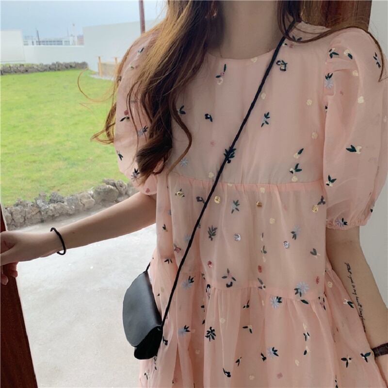 送料無料୨♥୧ スタイルサマーレディースドレス フローラル刺繍バックレスリボンスリーブ ピンク 大人ガーリー スウィート キュート カジュアル 夏物 花柄 AOS2642952635