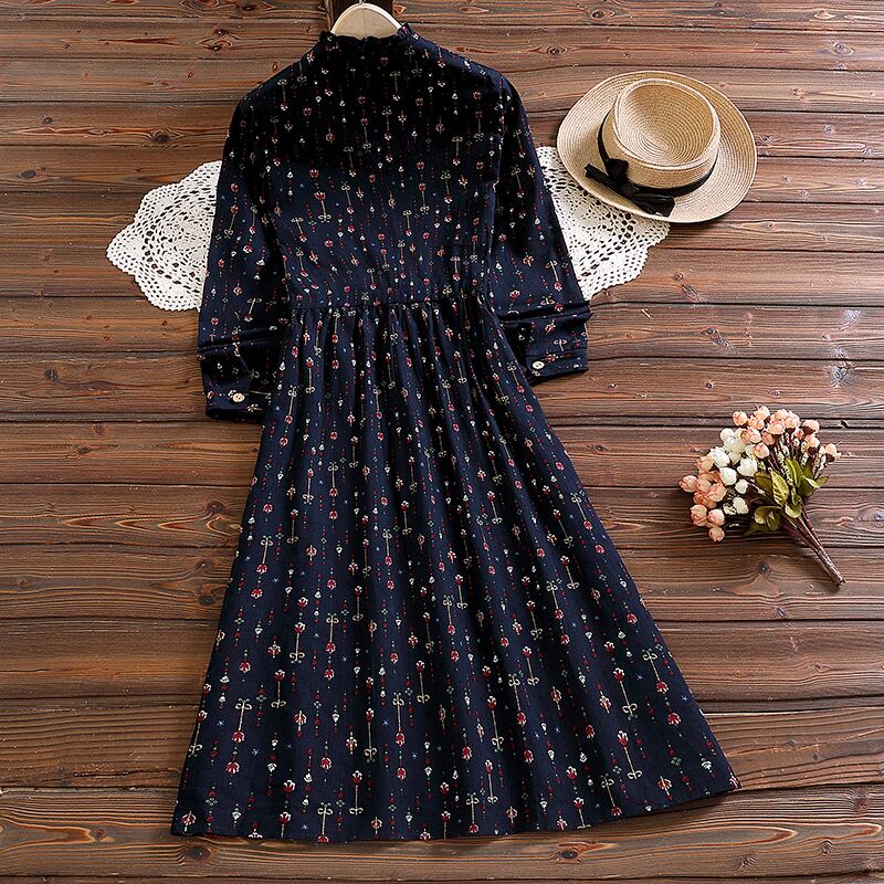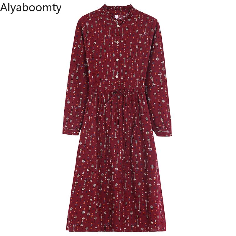 送料無料୨♥୧ スプリングオータムレディースAラインドレス スタンドカラーカラーレッドネイビーブルーレースプリント 大人ガーリー スウィート キュート カジュアル 春物 秋物 レースアップ AOS49187024677