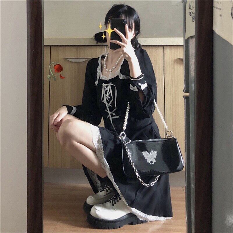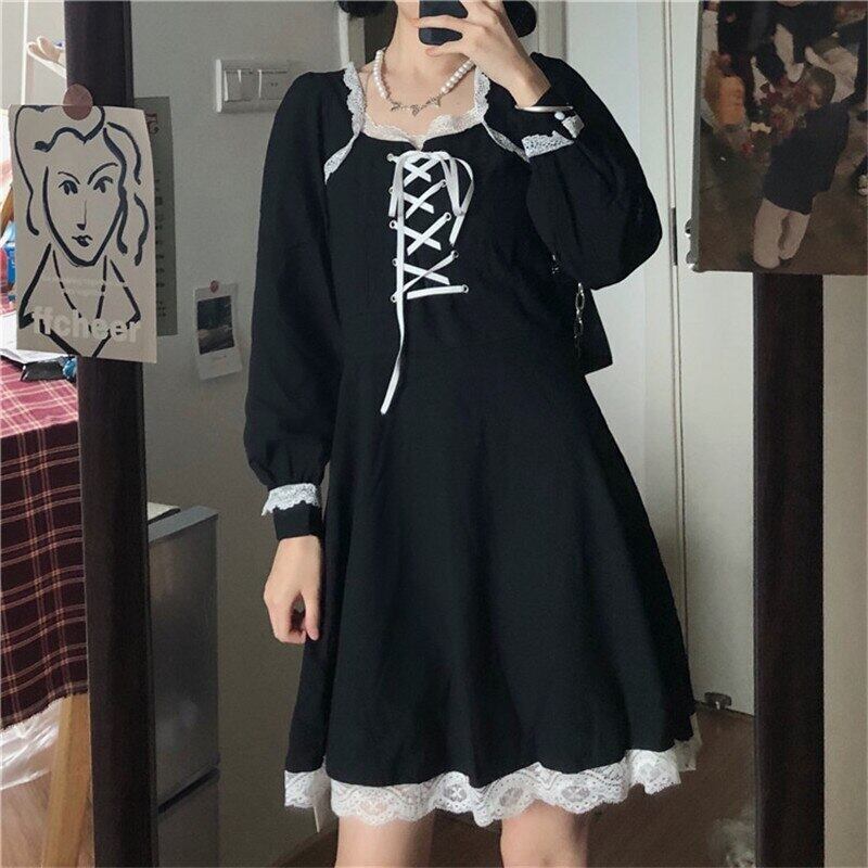 送料無料୨♥୧ レディースブラックミニドレス カラーバンドスタイルレースフリル ラッフル 大人ガーリー スウィート キュート カジュアル スクウェア AOS52690245311