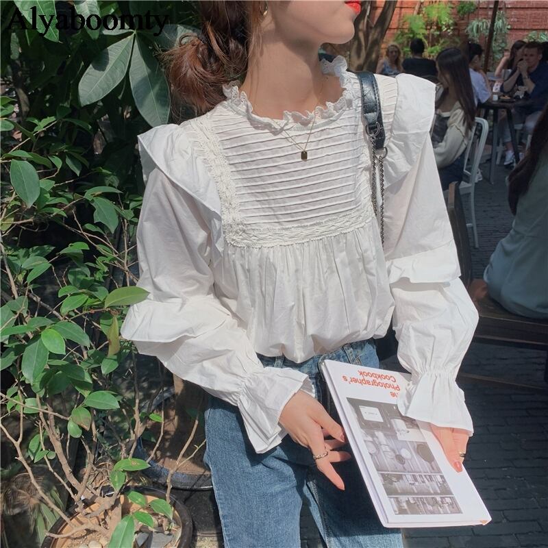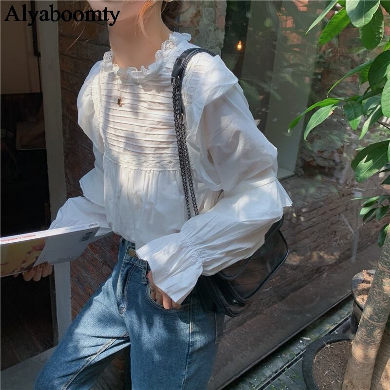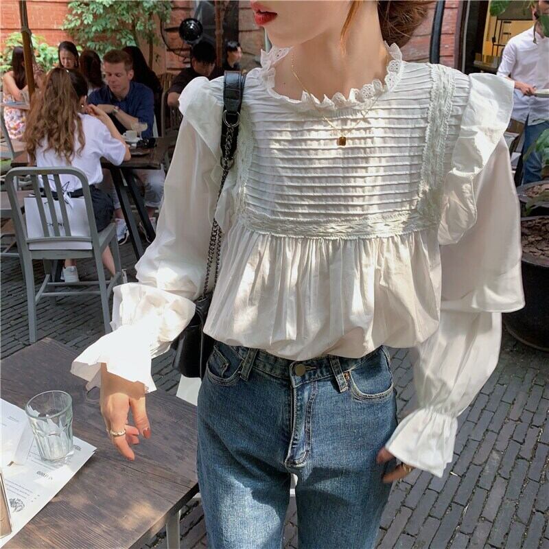 送料無料୨♥୧ スプリングオータムレディースブラウス カラーバギーホワイトスリーブシャツ フレアスリーブ 春物 秋物 AOS55023564470