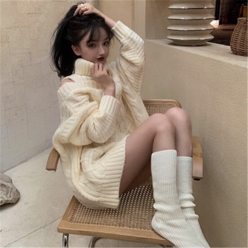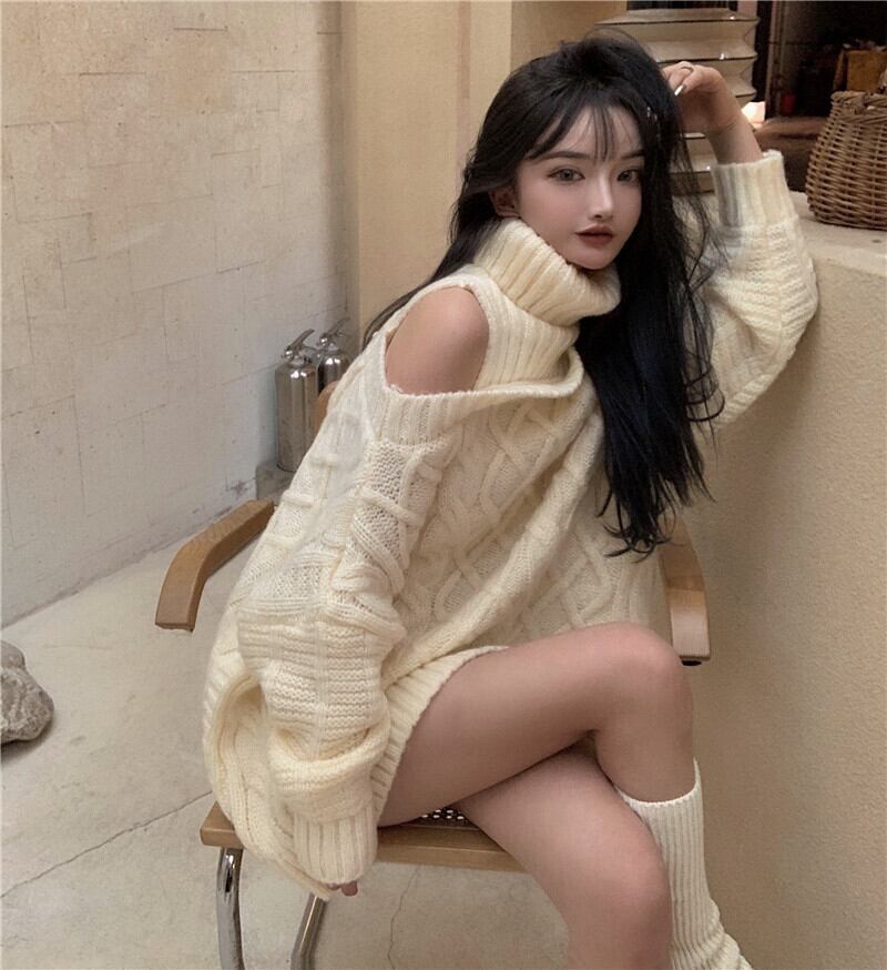 送料無料୨♥୧ オータムウィンターレディースストリートウェアセーター ニットオフショルダー 秋物 冬物 AOS81918813149