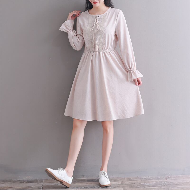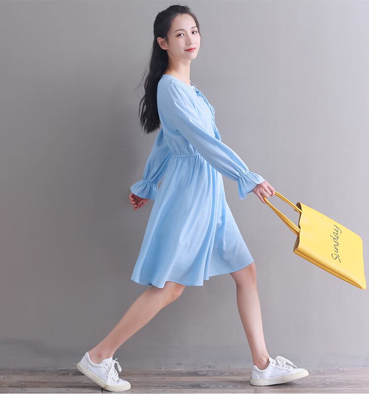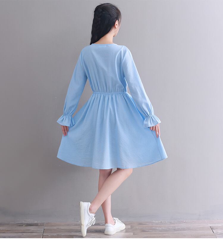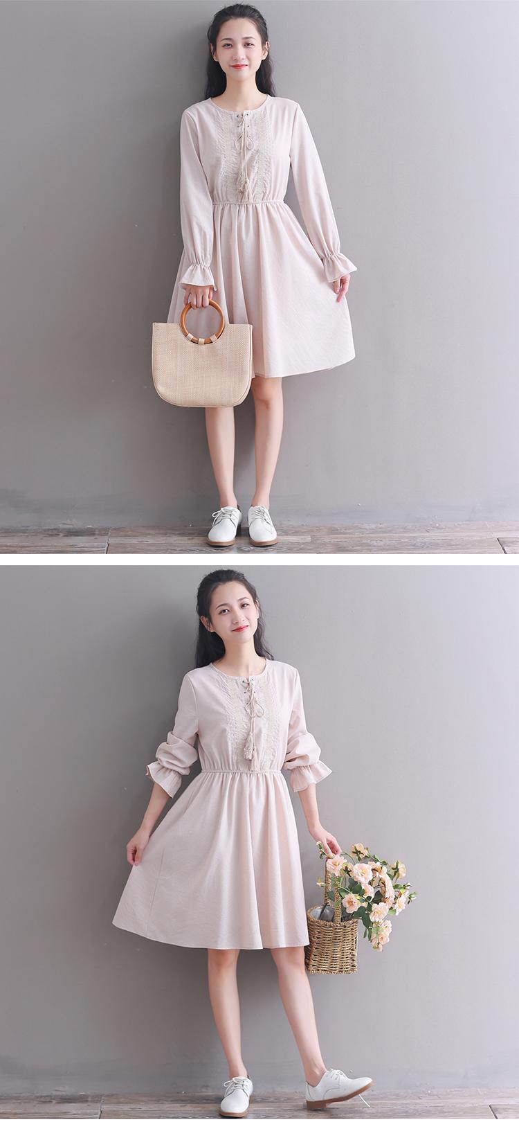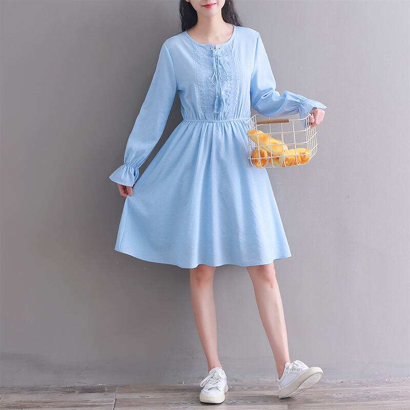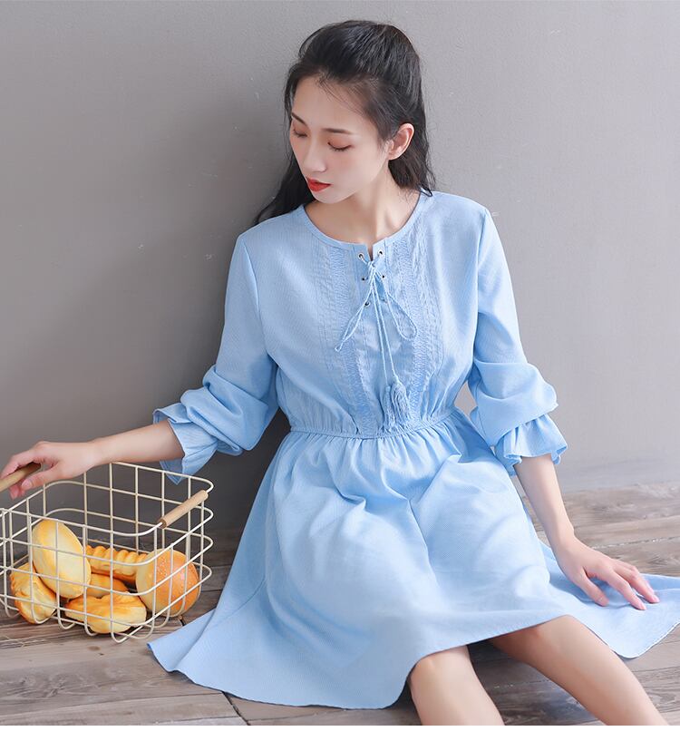 送料無料୨♥୧ オータムレディースブルードレス ストライプバンド刺繍ヴィンテージ コットン 大人ガーリー スウィート キュート カジュアル 秋物 ビンテージ AOS79299281590