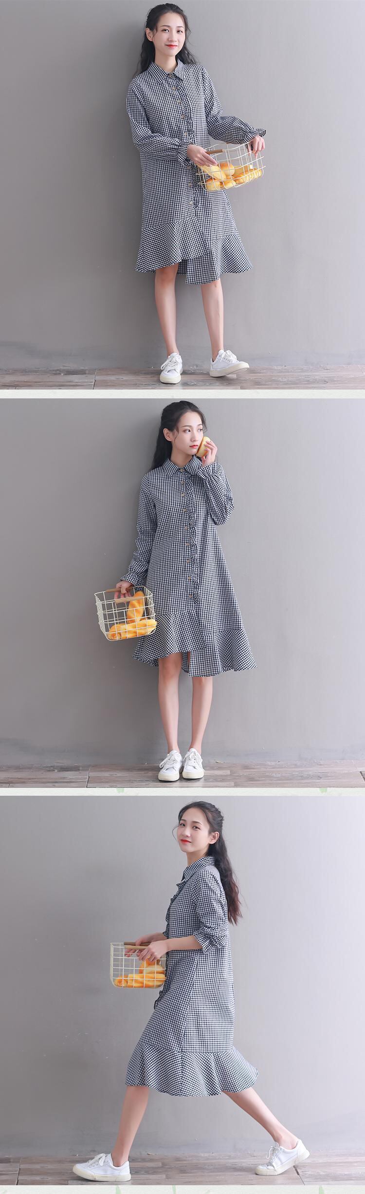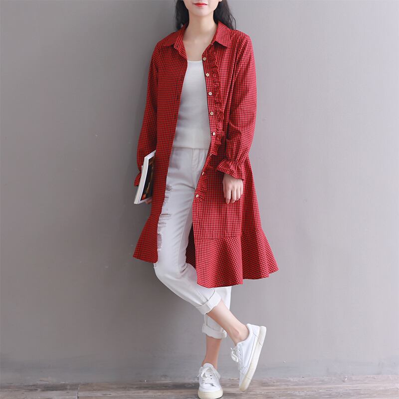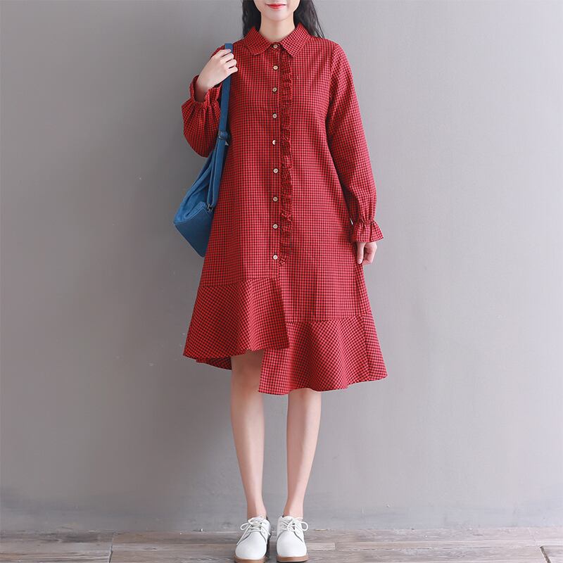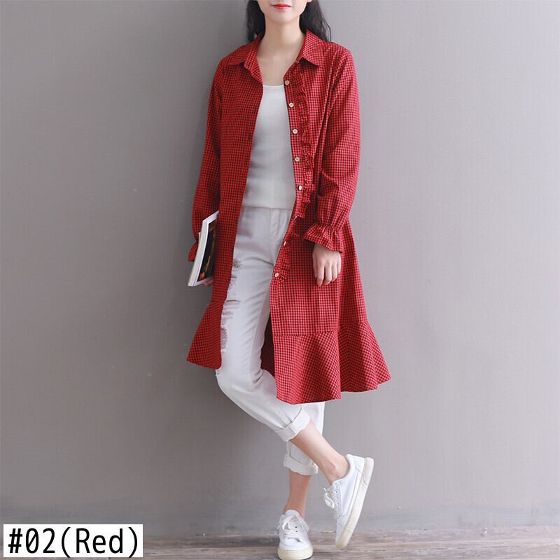 送料無料୨♥୧ オータムスプリングレディースシャツ ドレス ヴィンテージブラックレッド格子柄 コットン 大人ガーリー スウィート キュート カジュアル 春物 秋物 ビンテージ AOS83376594163