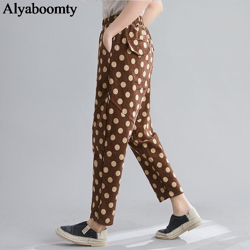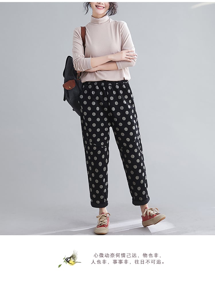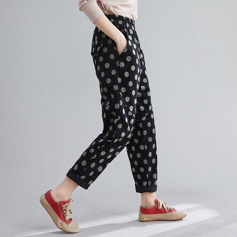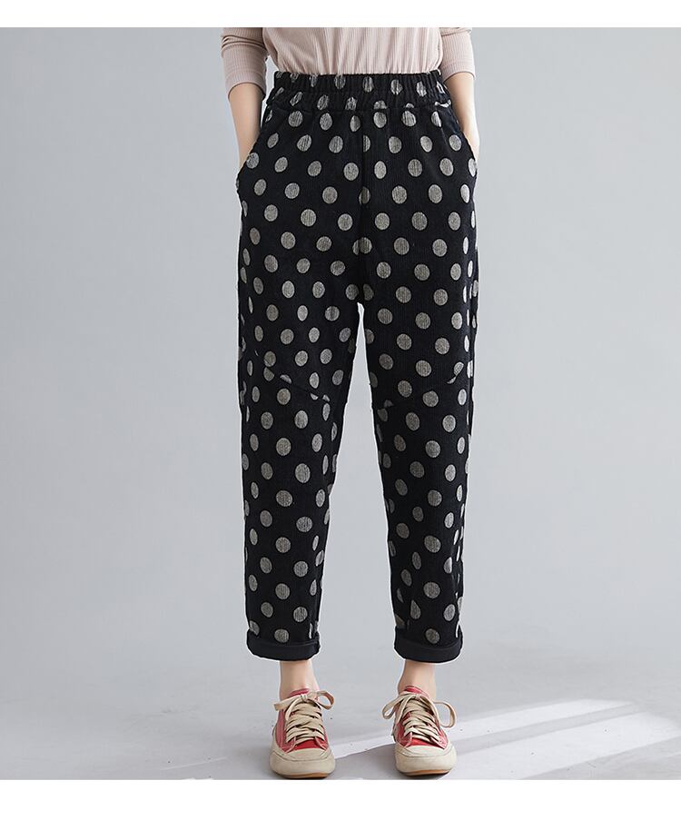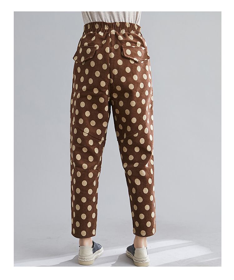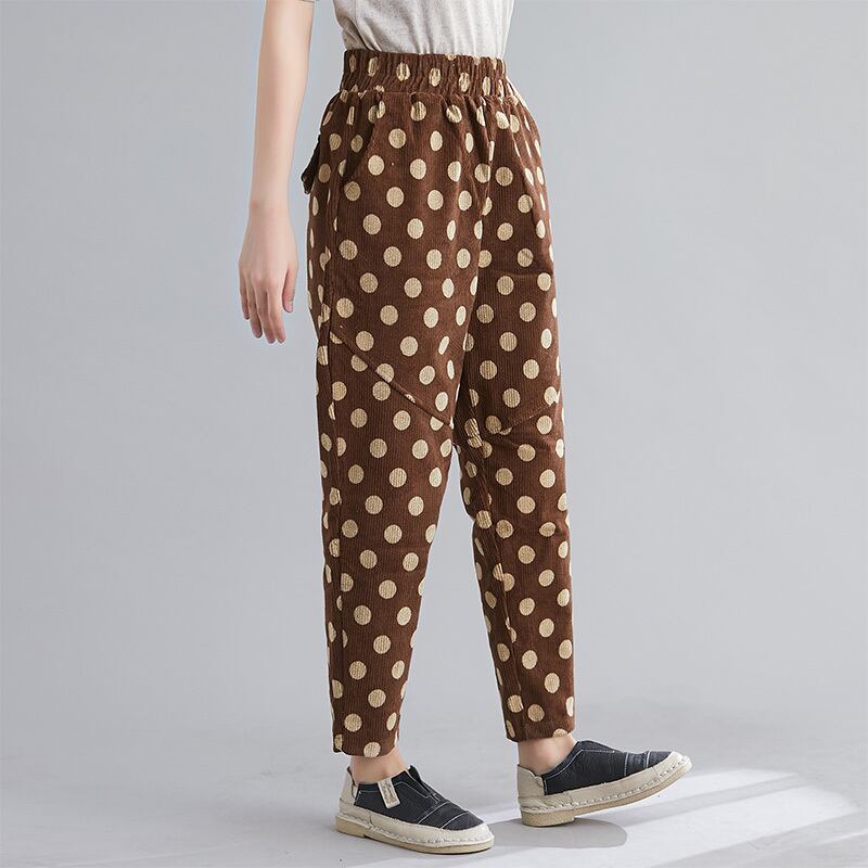 送料無料୨♥୧ オータムウィンターレディースルーズウェストブラウンブラック水玉パンツ ヴィンテージ 秋物 冬物 ビンテージ AOS85000653493