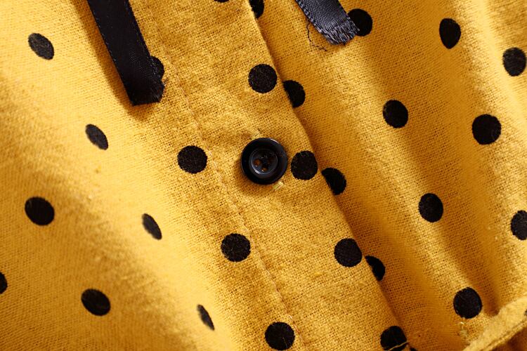 送料無料୨♥୧ スタイルレディースドレス カラーイエローレース長袖スリーブ水玉ドレス ワンピース ロング 大人ガーリー スウィート キュート カジュアル レースアップ AOS9866839218
