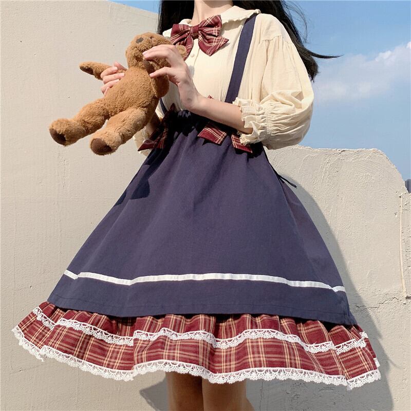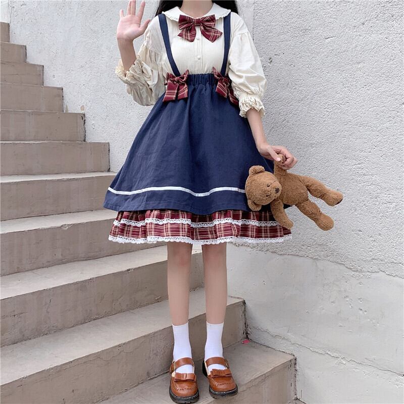 送料無料୨♥୧ レディースカラー七部袖スリーブ格子柄レースフリルスカート セット コットン ラッフル 大人ガーリー スウィート キュート カジュアル AOS92316467024