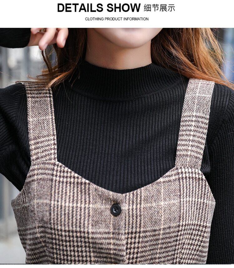 送料無料୨♥୧ スタイルオータムウィンターレディースミディドレス ヴィンテージ格子柄ノースリーブ 秋物 冬物 ビンテージ ヨーロピアン AOS1344635761