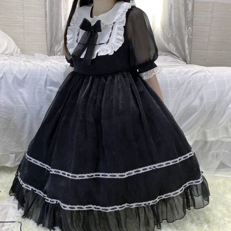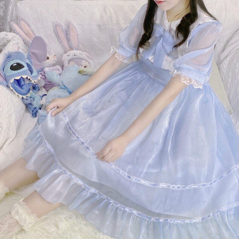 送料無料୨♥୧ スタイルサマーレディースドレス カラーブルーブラックリボンフリル ピンク ラッフル 大人ガーリー スウィート キュート カジュアル 夏物 AOS33837238444