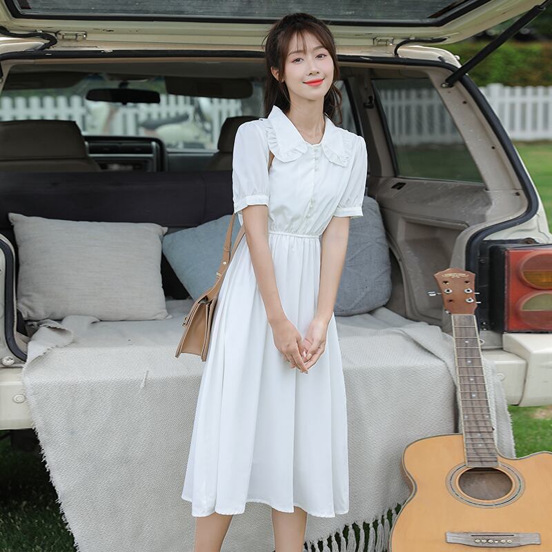 送料無料୨♥୧ サマーレディースホワイトベーシックドレス カラースタイルAライン半袖スリーブ ショート ハーフスリーブ 大人ガーリー スウィート キュート カジュアル 夏物 AOS2487402196