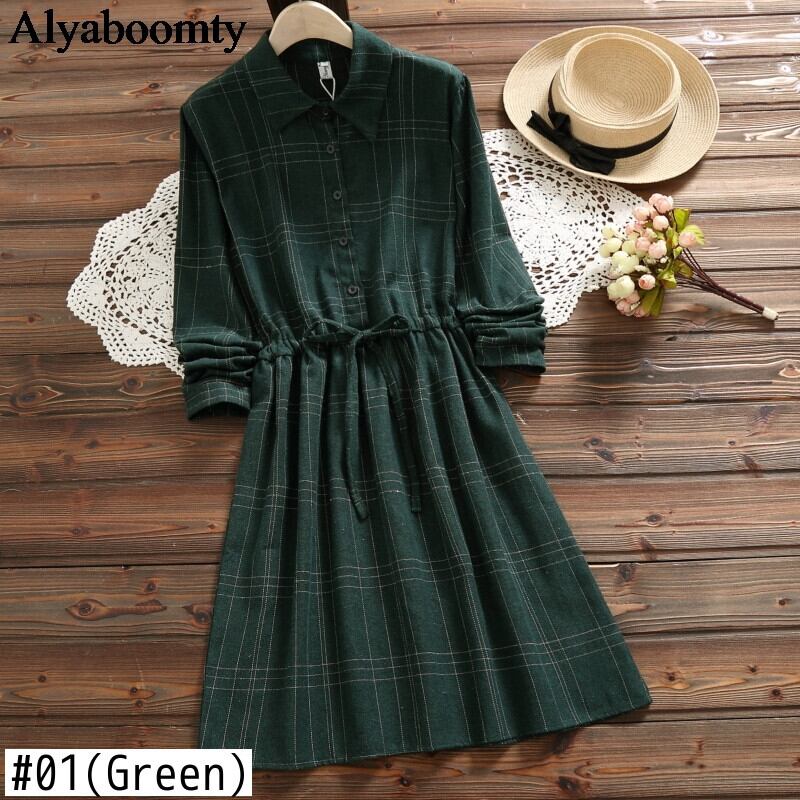 送料無料୨♥୧ オータムスプリングレディースヴィンテージドレス カラー格子柄長袖スリーブ ロング 大人ガーリー スウィート キュート カジュアル 春物 秋物 ビンテージ AOS32303912183