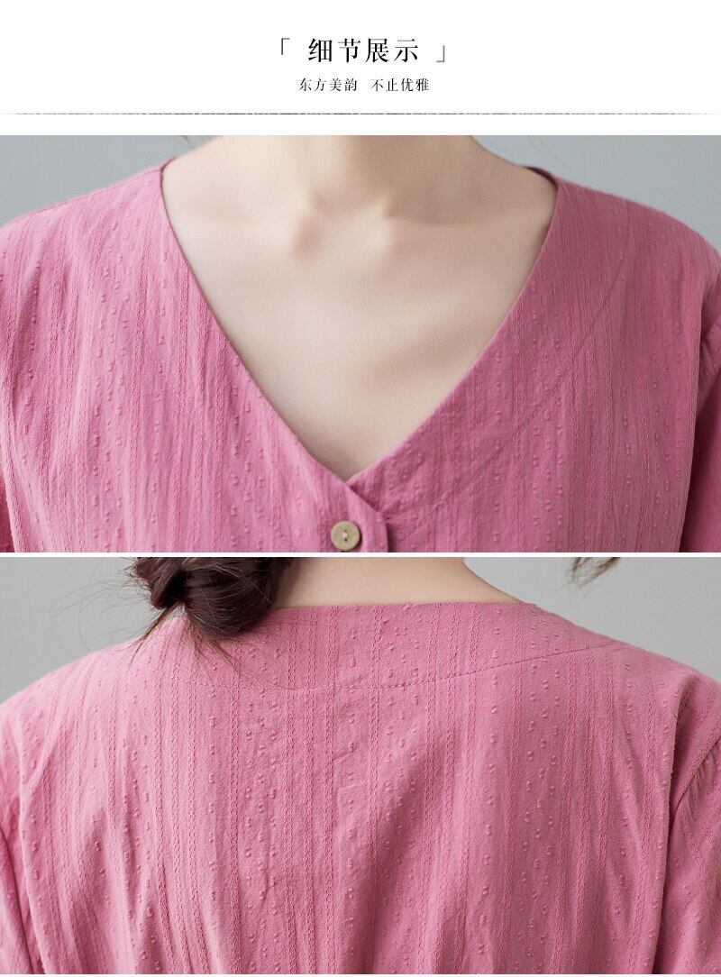 送料無料୨♥୧ サマーレディースミディシャツ ドレス Vネックグリーンジャカードヴィンテージレースロング ピンク コットン 夏物 レースアップ ビンテージ AOS90086920136