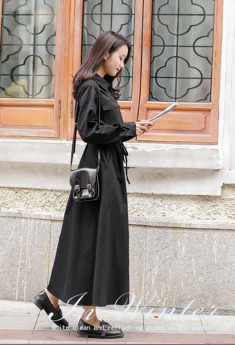 送料無料୨♥୧ スプリングオータムレディースロングシャツ ドレス カラーブラックヴィンテージミディカーディガンドレス ワンピース コットン 大人ガーリー スウィート キュート カジュアル 春物 秋物 ビンテージ AOS86682083814