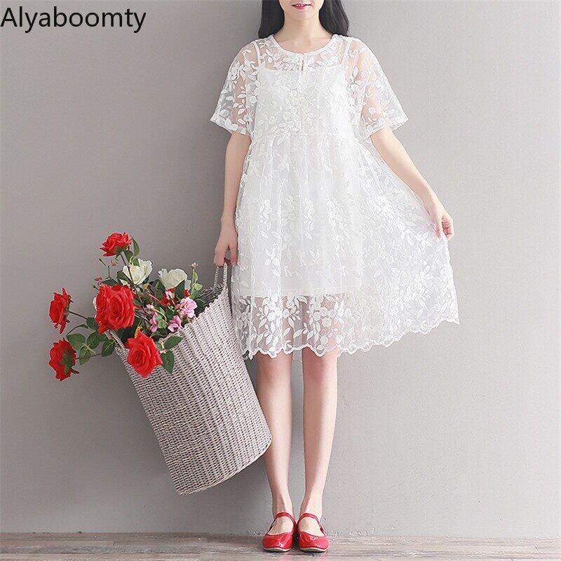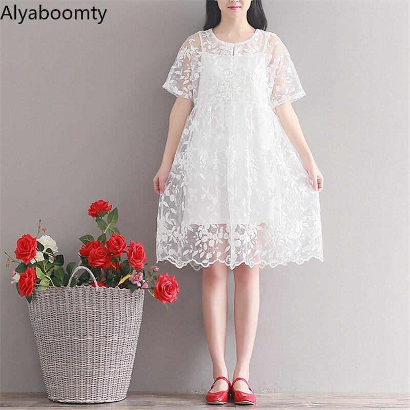 送料無料୨♥୧ サマーレディースドレス Vネックフローラル刺繍ルーズホワイト 大人ガーリー スウィート キュート カジュアル 夏物 花柄 AOS1507896101