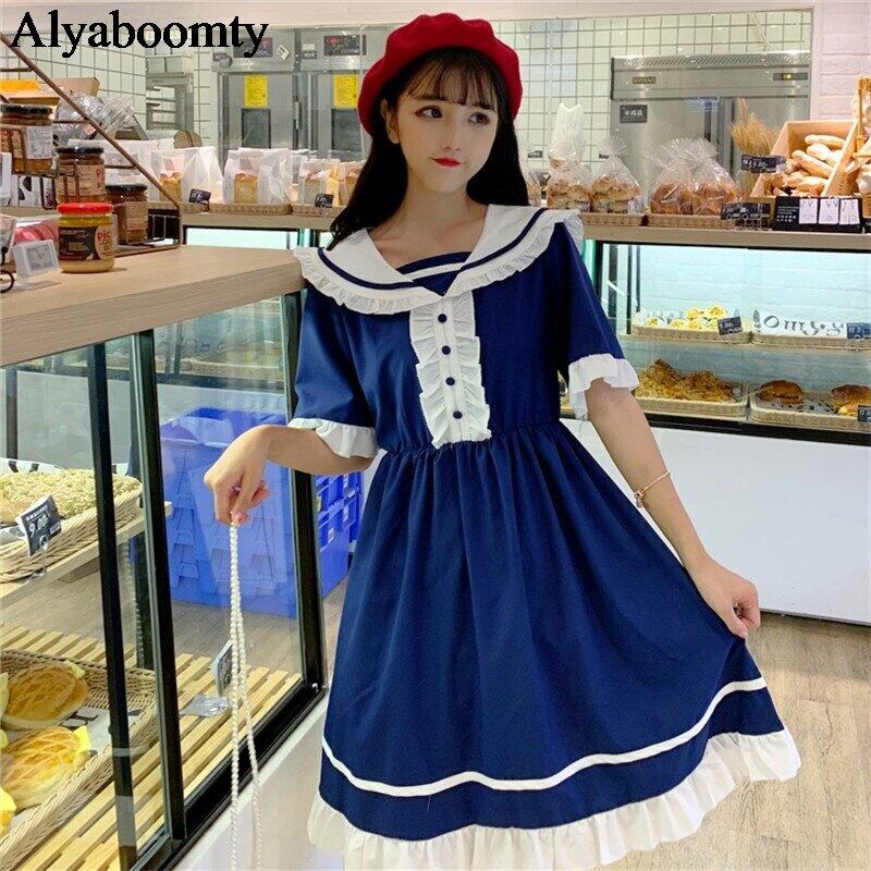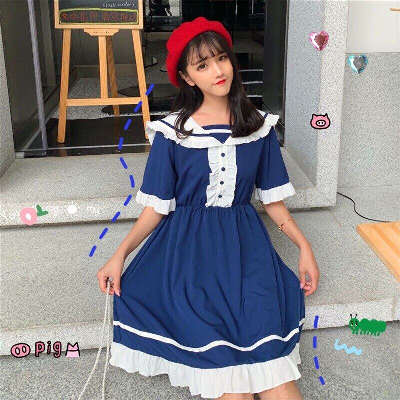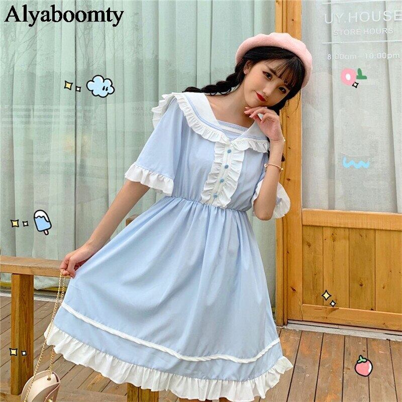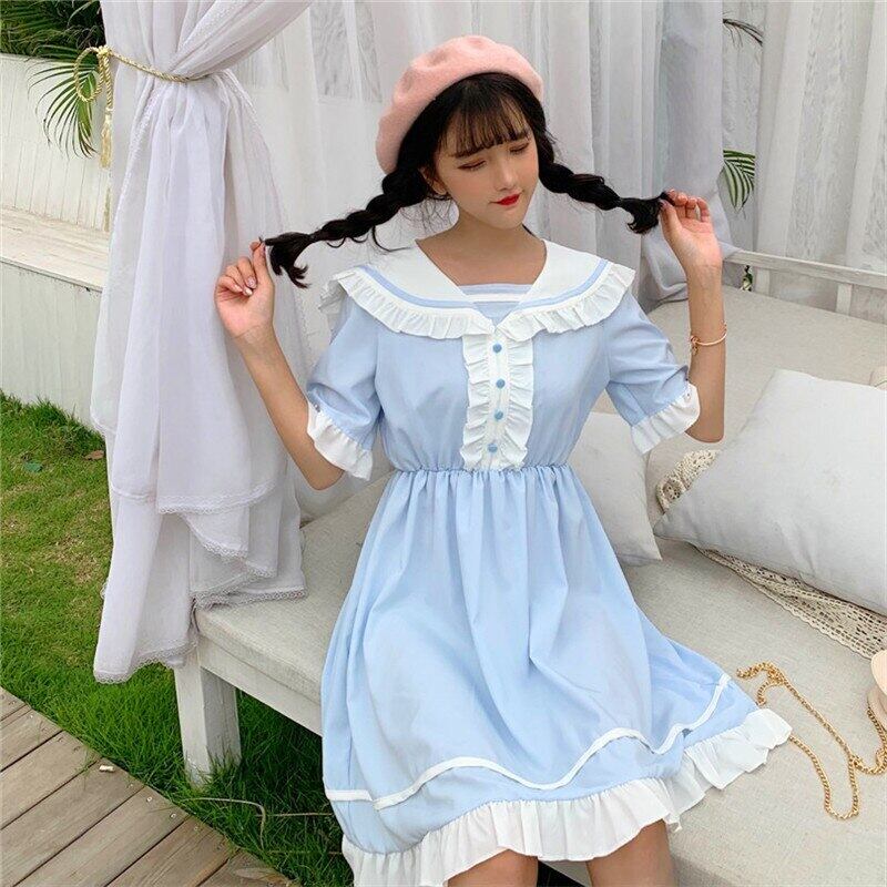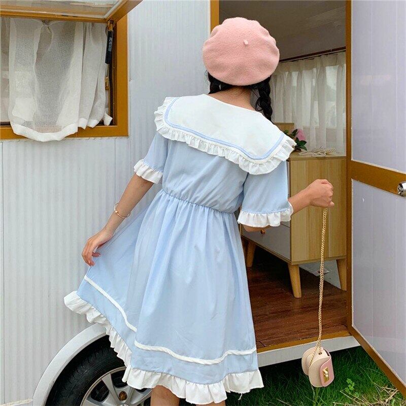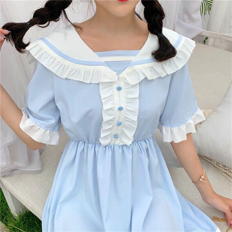 送料無料୨♥୧ サマーレディースドレス カラーブルーウェストスリーブフリル フレアスリーブ ラッフル 夏物 AOS1074457368