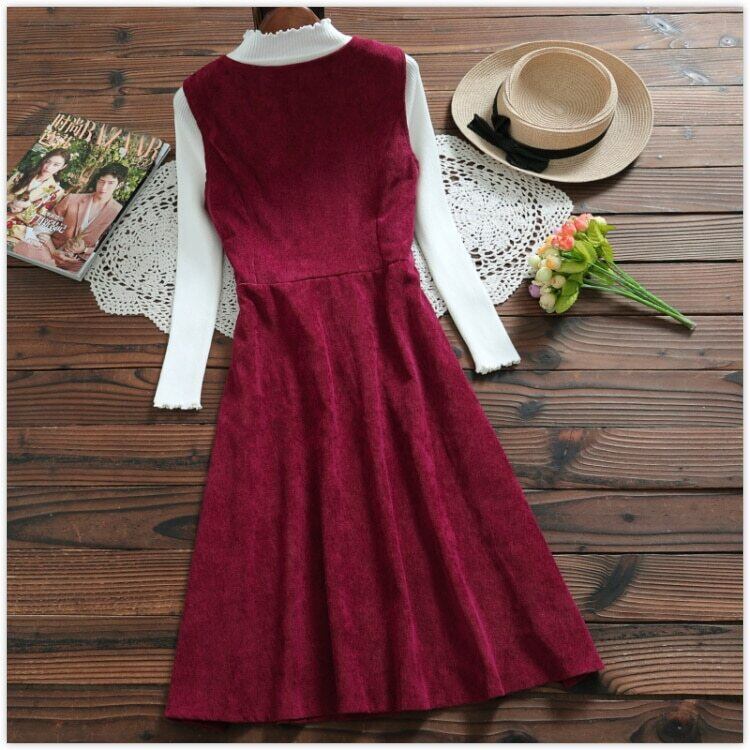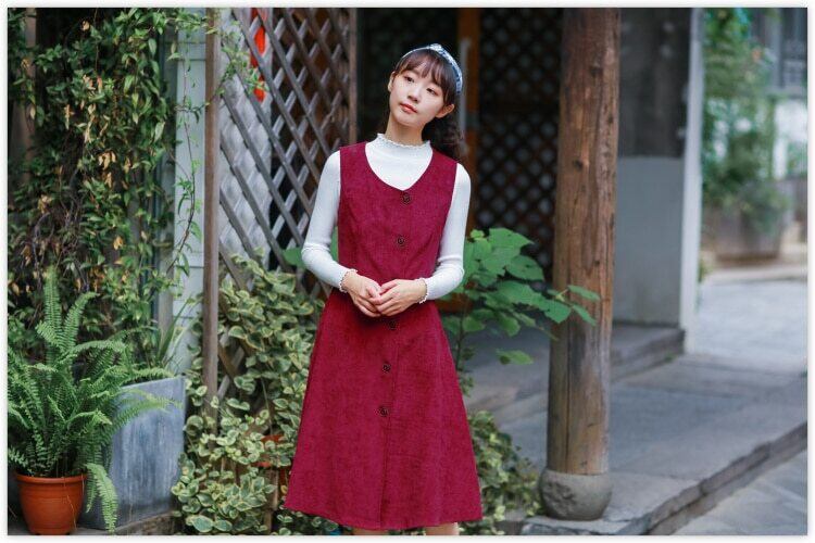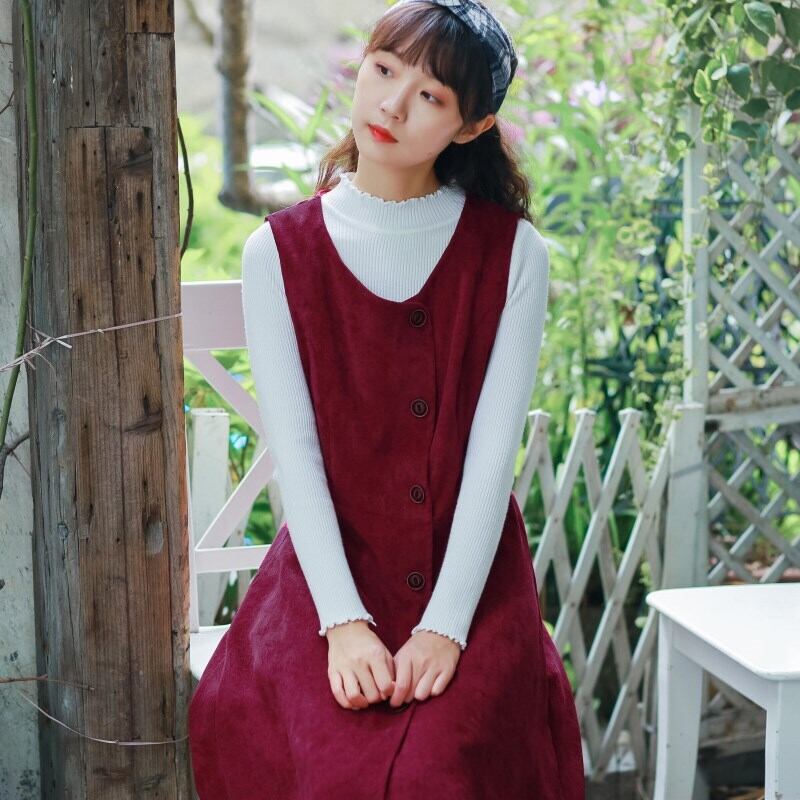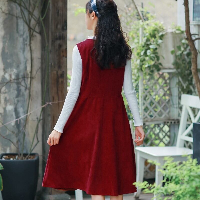 送料無料୨♥୧ オータムウィンタードレス レッドルーズヴィンテージコーデュロイ 大人ガーリー スウィート キュート カジュアル 秋物 冬物 ビンテージ AOS65098113226