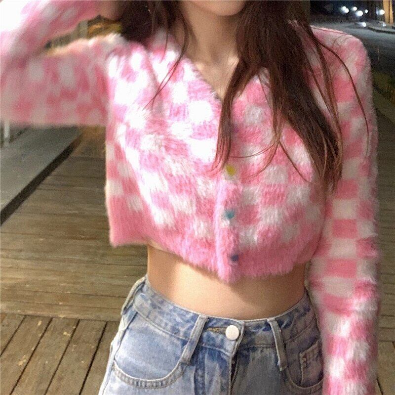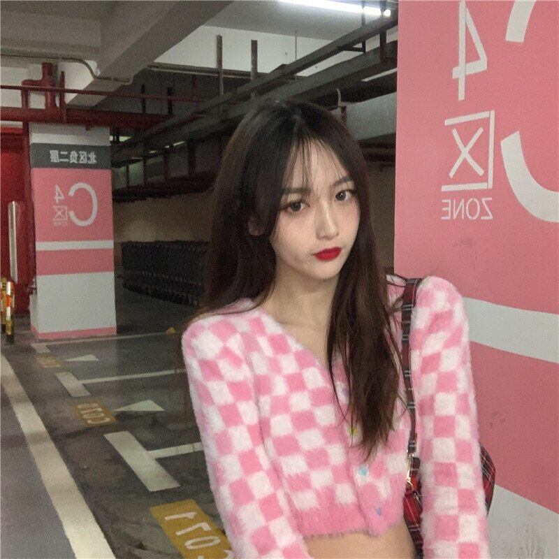 送料無料୨♥୧ レディースストリートウェアショートセーター Vネックカーディガンハート ピンク 大人ガーリー スウィート キュート カジュアル かわいい AOS17068742881