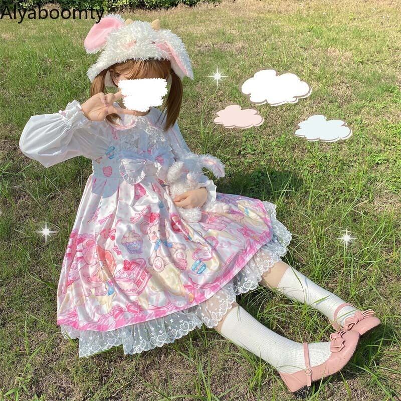 送料無料୨♥୧ スタイルスプリングレディースドレス ブラックプリントレースフリルリボン ラッフル 大人ガーリー スウィート キュート カジュアル 春物 AOS75939267754