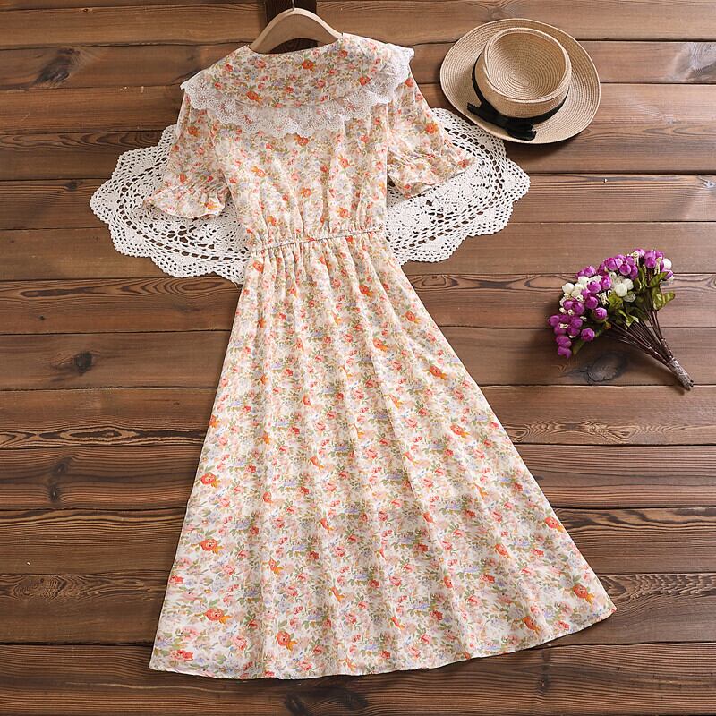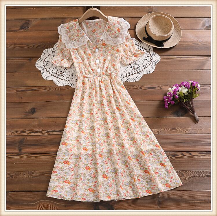 送料無料୨♥୧ サマーレディースフローラルドレス カラーレースヴィンテージシフォンミディ 大人ガーリー スウィート キュート カジュアル 夏物 花柄 ビンテージ AOS97490885255