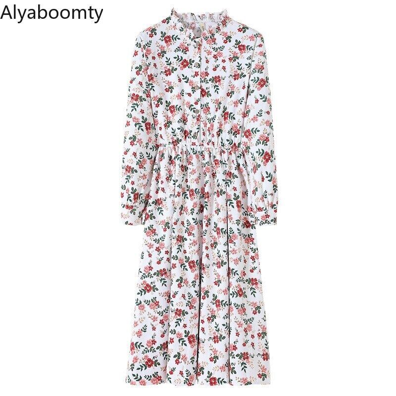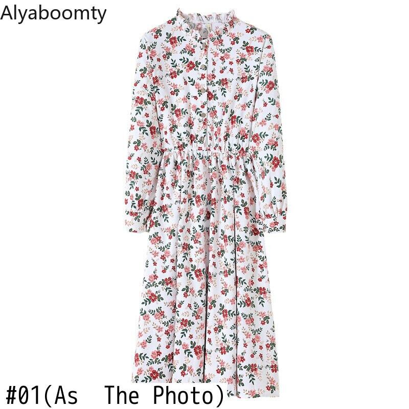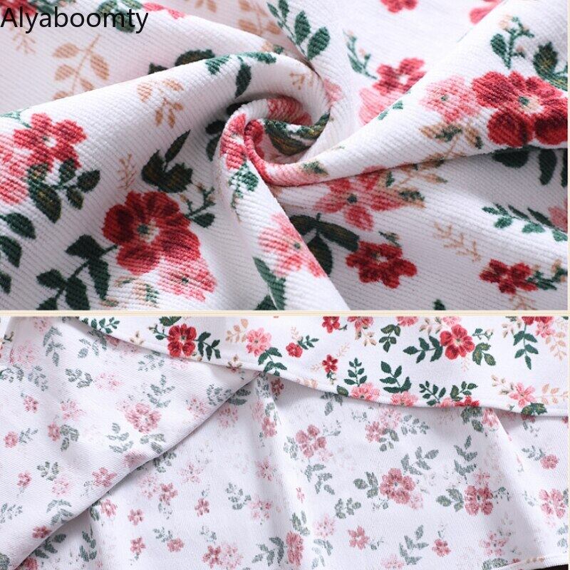 送料無料୨♥୧ オータムスプリングレディースAラインミディドレス カラーウェストフローラルプリントコーデュロイ 春物 秋物 花柄 AOS85291585073