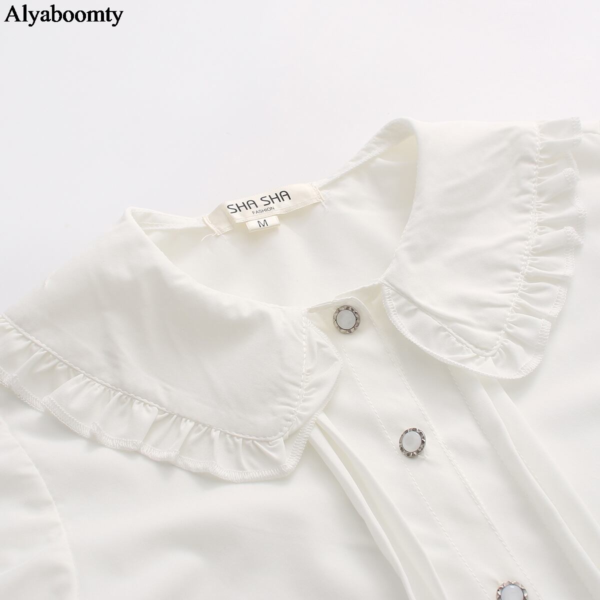 送料無料୨♥୧ スプリングオータムレディースシャツ カラーホワイトブラウス 長袖スリーブフリル ロング ラッフル 大人ガーリー スウィート キュート カジュアル 春物 秋物 AOS65286673756