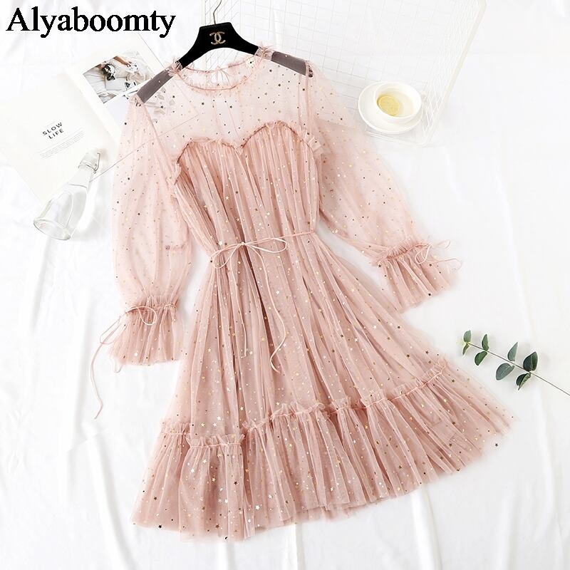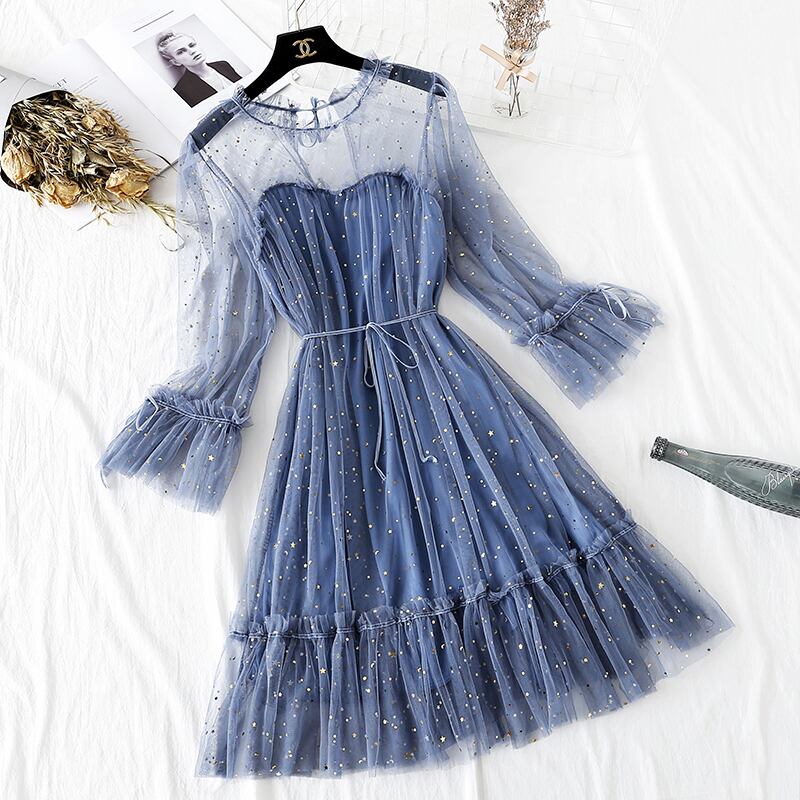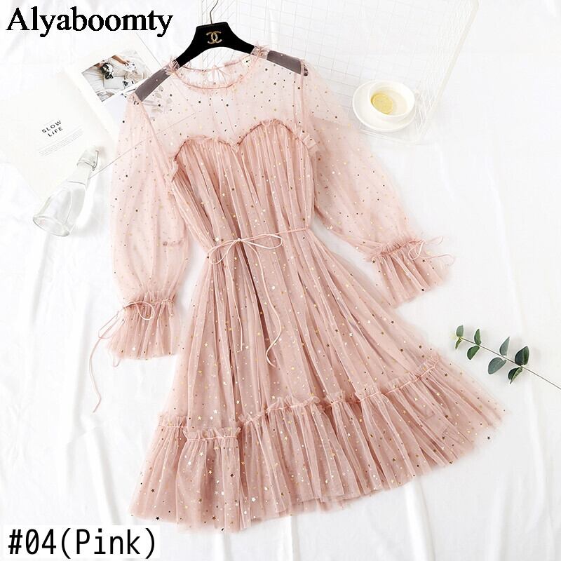 送料無料୨♥୧ スプリングレディースドレス ブラックブルーフリル ピンク ラッフル 春物 AOS53473636183