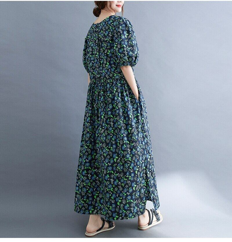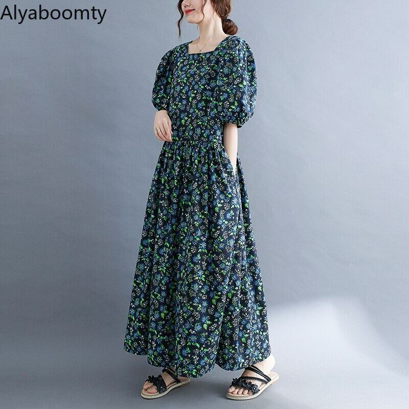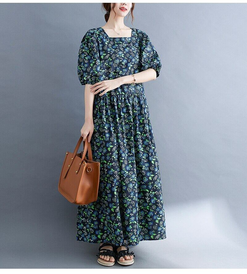 送料無料୨♥୧ サマーレディースマキシドレス カラーフローラルプリントバギールーズスリーブスタンダードガウン ロング ランタンスリーブ レトロ 夏物 花柄 スクウェア AOS11844751428