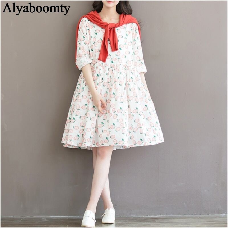 送料無料୨♥୧ スプリングオータムレディースドレス プリント柄ルーズ コットン 大人ガーリー スウィート キュート カジュアル 春物 秋物 Oネック AOS83961305117
