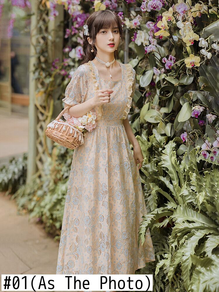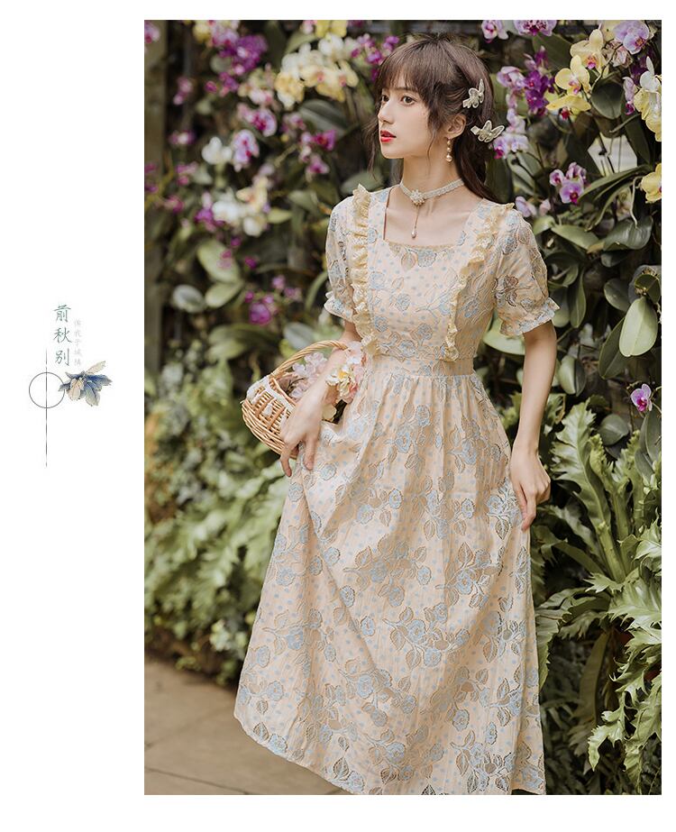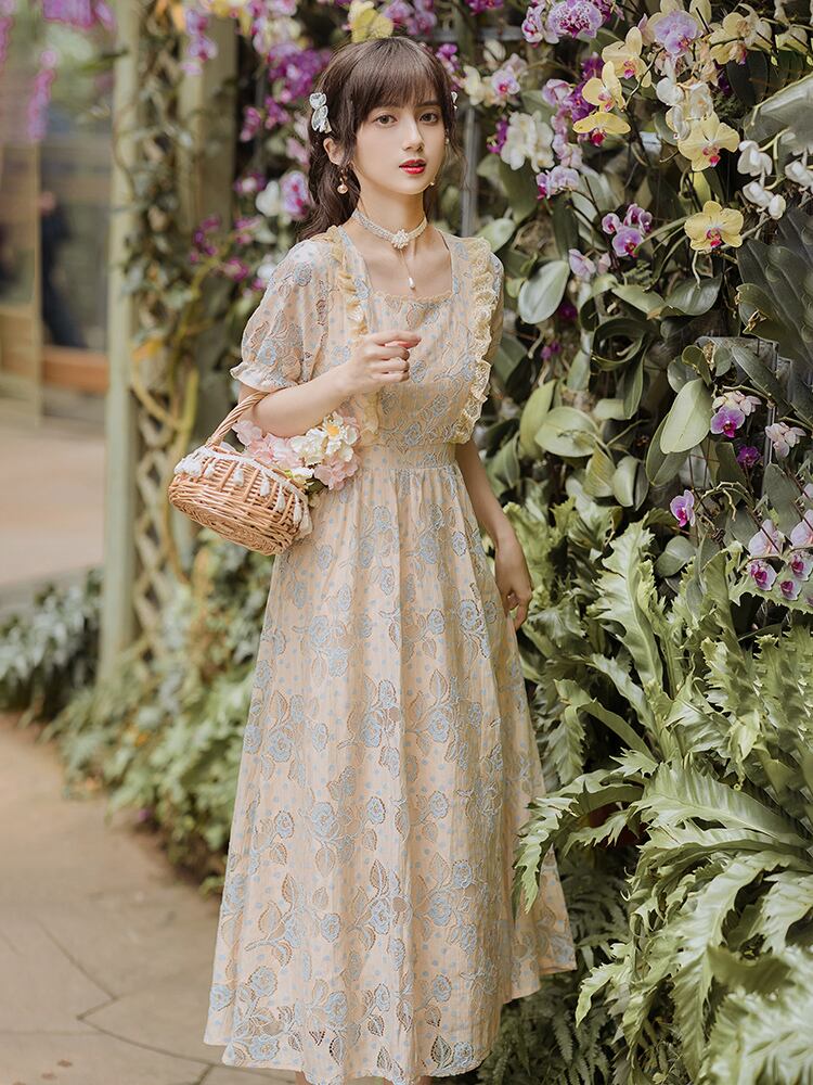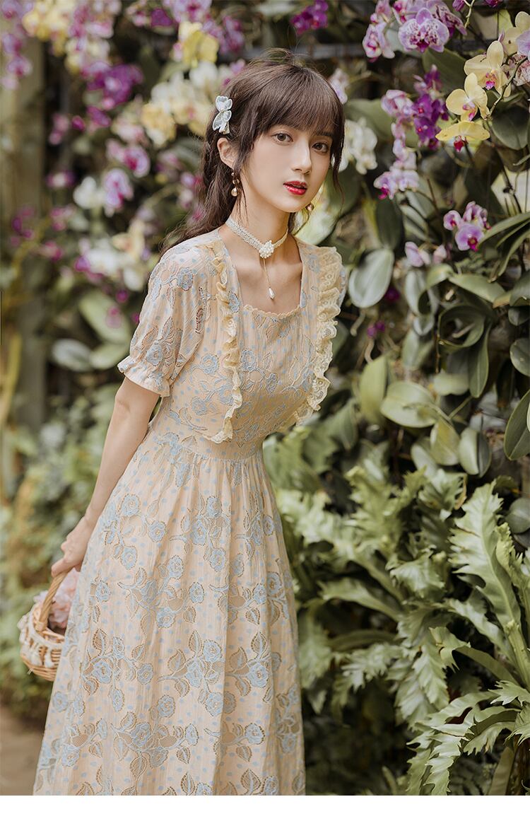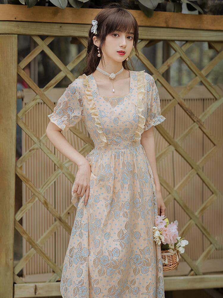 送料無料୨♥୧ サマーレディースレースドレス カラーフローラル刺繍フリル ラッフル 夏物 花柄 スクウェア AOS58412449251