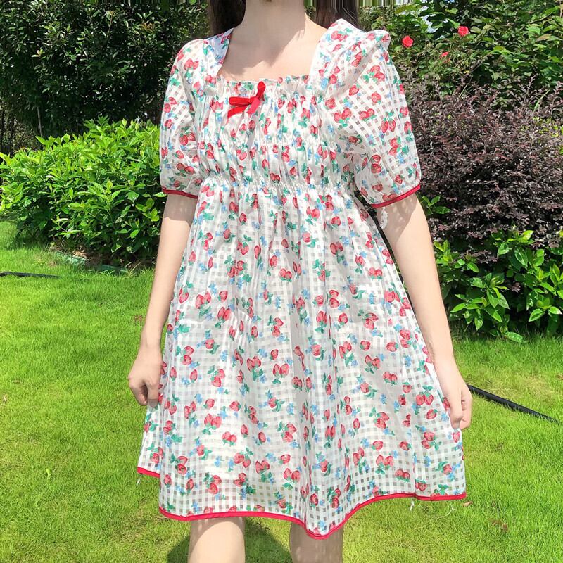 送料無料୨♥୧ サマーレディーススタイルミニドレス カラープリントリボン 大人ガーリー スウィート キュート カジュアル 夏物 スクウェア AOS35514587005